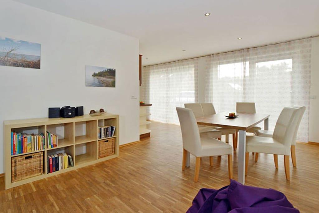 Erholungsort Glowe, über 2 Etagen, ruhige Lage am Waldrand, ca 350 m zum Sandstrand, ca 1000 m zum Hafen Glowe, ca 1000 m nächste Einkaufsgelegenheit mit Bäcker Erdgeschoss: großer Wohn- Essbereich mit Fußbodenheizung, gemütliche Couch, TV/ Sat (Flatscreen), Radio mit CD, DVD-Player, offene komplett ausgestattete Einbauküche mit 4- Plattenherd (Ceranfeld), Backofen, Kühlschrank mit kleinem Gefrierfach, Mikrowelle, Geschirrspüler und diversen Elektrogeräten, 1. Bad mit Dusche/ WC, Obergeschoss: 3 separate Schlafzimmer mit jeweils 1 Doppelbett (1 Schlafzimmer mit TV/Sat), 1 Kinderreisebett vorhanden, 2. Bad mit Dusche/ WC, Südterrasse mit 2 Zugängen und Gartenmöbel, Grill vorhanden Urlaubsvergnügen zum Entspannen in ruhiger, strandnahen Lage” Grundstück ca. 450 qm, 350 m zum Ostseestrand, Waschmaschine ohne Gebühr, Fenster mit elektrischen Außenjalousien, ca. 1000 m zur Einkaufsgelegenheit mit Bäcker, PKW-Stellplatz vor dem Haus, Haustiere nach Absprache (Gebühr Euro 5,-/ pro Haustier/ pro Nacht)
