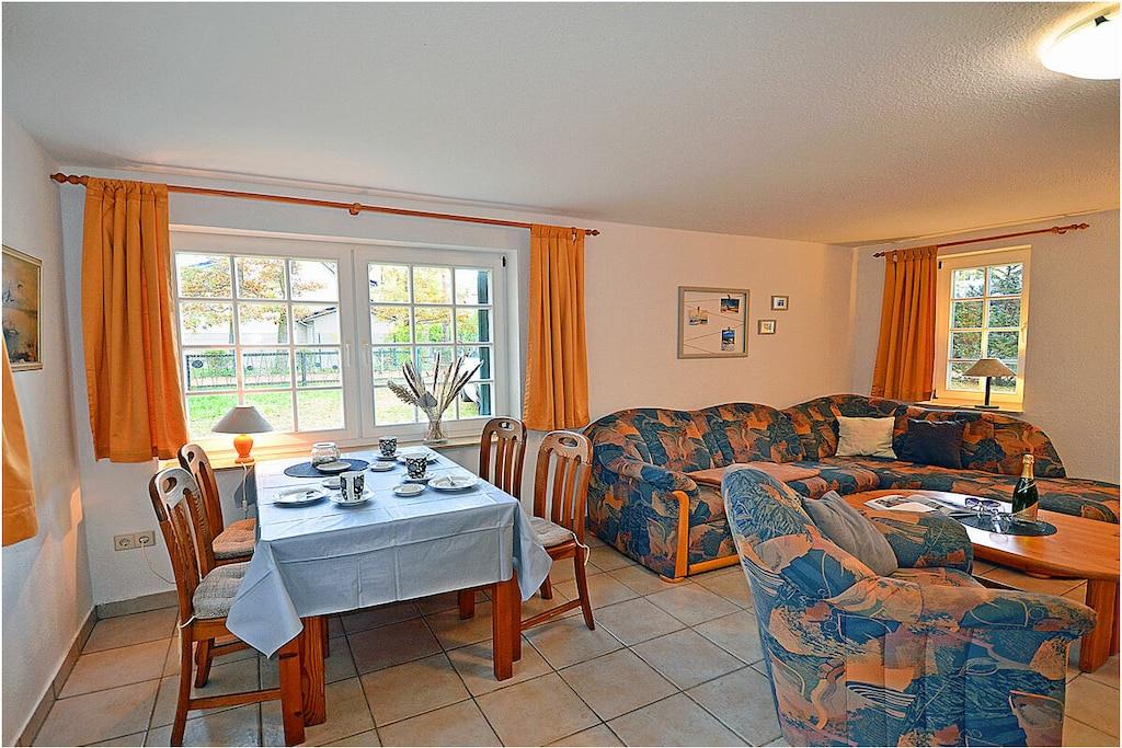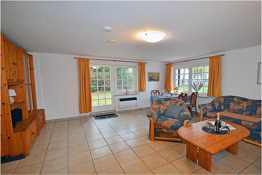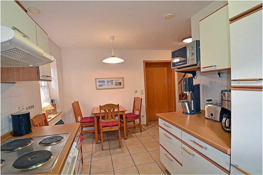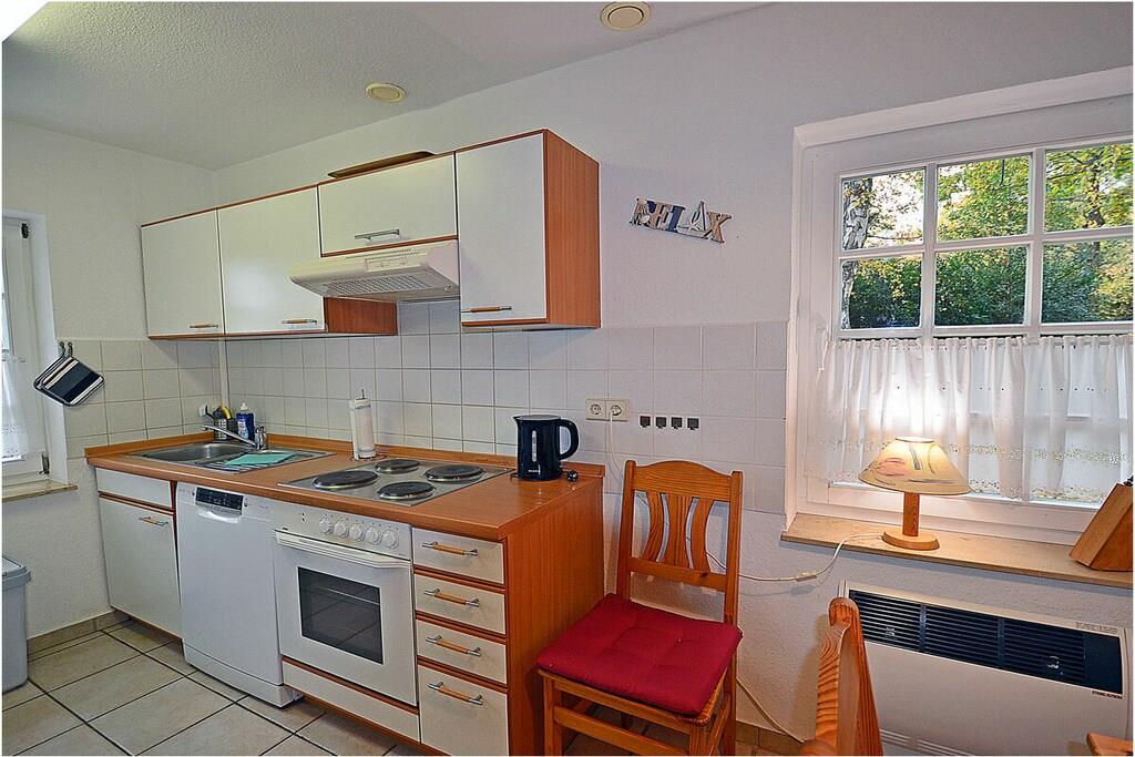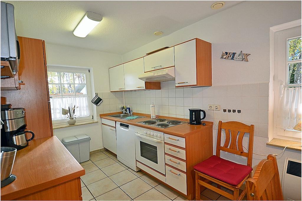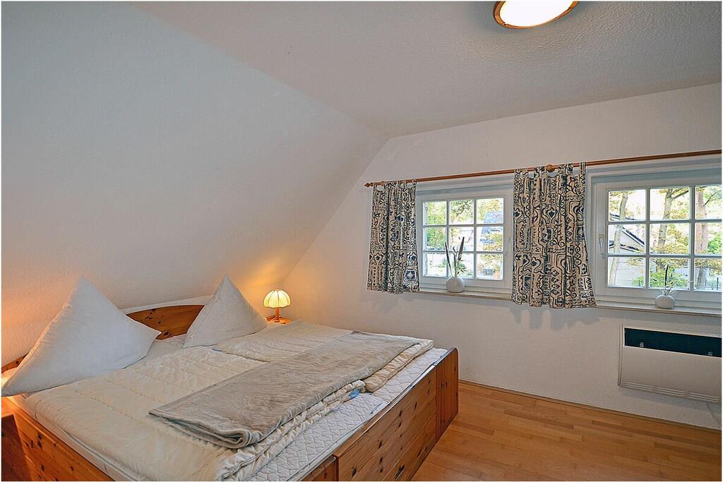 Erdgeschoss: freuen Sie sich auf ein gemütliches Heim mit Couchecke, TV/Sat (Flatscreen), Radio/ CD, Internet, Bücher und Gesellschaftsspiele für gemütliche Abende, separate komplett ausgestattete Einbauküche mit Esstisch, 4-Plattenherd, Backofen, Kühlschrank mit großem Gefrierfach, Geschirrspüler, Mikrowelle und diversen Elektrogeräten, Wohnzimmer, Küche und Diele mit Fußbodenheizung, Bad mit Dusche und WC Im Obergeschoss sind vier Schlafzimmer eingerichtet. 1.Schlafzimmer mit einem Doppelbett (2 Matratzen je 90×200) und Kleiderschrank, die 3 weiteren Schlafräume sind jeweils mit einem Einzelbett (90×200) und Kommode ausgestattet, Bad mit Dusche und WC, nutzen Sie die Sauna – um auch an kühleren Tagen den Urlaub rundum genießen zu können. Außenbereich: großes komplett umzäuntes Grundstück (ca. 710 qm), Terrasse mit Tisch und Gartenstühlen sowie Gartenliegen für 5 Personen, Grillmöglichkeit besteht