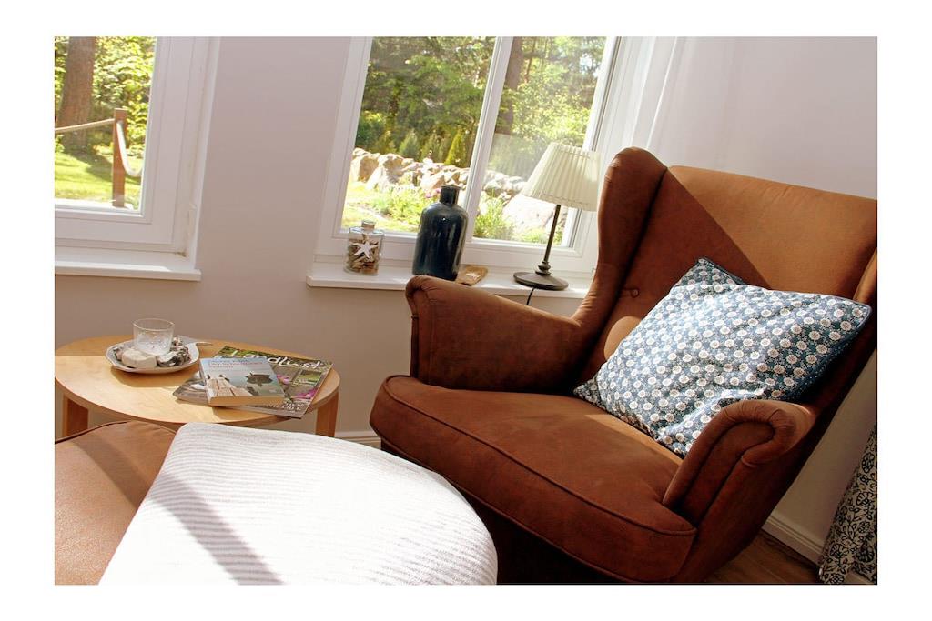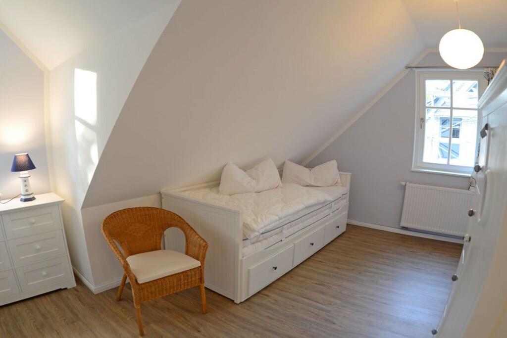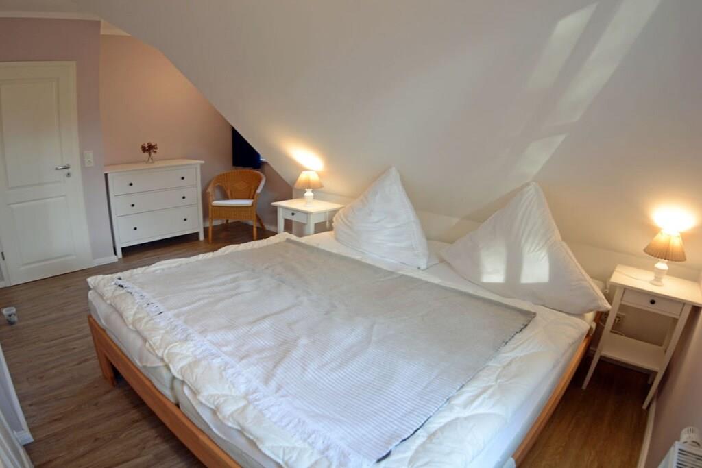 Liebevoll eingerichtetes Wohlfühlhaus auf naturbelassenem Grundstück Freuen Sie sich auf den großzügigen Wohnbereich mit gemütlicher Couchecke, TV/ Sat (Flatscreen),Radio, Kaminofen und einem kuscheligen Leseplatz, offene komplett ausgestattete Einbauküche mit großem Esstisch für 6 Personen, 4- Plattenherd (Ceranfeld), Backofen, Kühlschrank mit großem Gefrierfach, Geschirrspüler und diversen Elektrogeräten, Bad mit Dusche, WC und Sauna – um auch an kühleren Tagen den Urlaub rundum genießen zu können Im Obergeschoss haben wir für Sie drei Schlafzimmer eingerichtet – alle im nordischen Stil und doch jedes ein bisschen anders… Eines der Zimmer wird besonders die Kinder ansprechen: mit Bullaugenschrank, Legosteinen und Holzeisenbahn, 1. & 2. Schlafzimmer mit je einem Doppelbett (180×200 cm) und Kleiderschrank, 3. Schlafzimmer mit einem Einzelbett ausziehbar auf 160 x 200 cm mit Kleiderschrank, Bad mit Dusche und WC Außenbereich: auf der Holzterrasse finden 6 Personen Platz, Gartenmöbel (6 Gartenstühle), Grill vorhanden Besonderes: teilweise umzäuntes Grundstück ca. 627 qm groß, 2 PKW-Stellplätze am Haus, Nichtraucher, Internet (WLAN) vorhanden,, Insektenschutzgitter an den Fenstern und der Terrassentür, Waschmaschine (ohne Gebühr), Abstellmöglichkeit für Fahrräder im Gartenhaus Großer Spielplatz und ein Beachplatz zum Volley- und Fußball spielen, Einkaufsmöglichkeiten, Bäcker und Restaurant in unmittelbarer Nähe, optimale Rad- und Wandermöglichkeiten, Haustiere nicht erwünscht