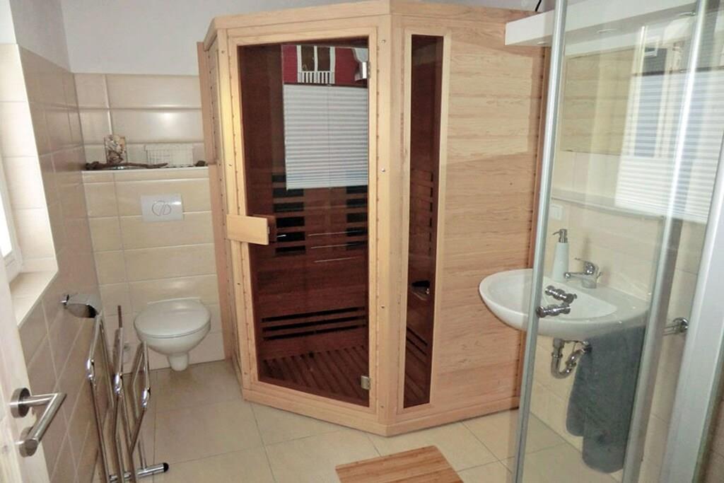 Erholungsort Glowe, über 2 Etagen, ca. 800 m zum Sandstrand (Ostsee), ca. 2 km zum Bodden Im romantischen und beschaulichen Fischerort Glowe liegt diese neue im skandinavischen Stil erbaute Doppelhaushälfte in absoluter ruhiger Lage in einem Waldschutzgebiet. Mit seinem großzügigen Raumangebot haben bis zu 4 Personen über zwei Etagen ausreichend Platz. Eigener PKW-Stellplatz (direkt am Haus) sowie einer großen möblierte Terrasse, die nach einem tollen Strandtag, zum relaxen einlädt, steht Ihnen zur Verfügung. Oder lassen Sie an kalten Wintertagen, nach einem Saunagang bei einem Glas Rotwein am Kaminofen, den Tag ausklingen. Mit seinen zwei Schlafzimmern und seiner hochwertigen modernen Ausstattung bietet das Haus allen nur erdenklichen Komfort. Von Glowe haben Sie einen optimalen Ausgangspunkt und können durch das gut ausgebaute Rad- und Wanderwegenetz umfangreiche Radtouren und Wanderungen vornehmen. In nur wenigen Gehminuten (800m) erreichen Sie den 10km langen weißen Sandstrand (Schaabe) der Ostsee. Dieser lädt zum Baden und relaxen ein. Erdgeschoss: großzügiger Wohn-Essbereich mit Fußbodenheizung und Kamin, Couchlandschaft mit TV/Sat (Flatscreen), Blu-ray Player, komplett ausgestattete Einbauküche mit Waschmaschine, 4-Plattenherd (Ceranfeld), Backofen, Kühlschrank mit kleinem Gefrierfach, Mikrowelle, Geschirrspüler und diverse Elektrogeräte, ein Bad mit Infrarotsauna, Dusche und WC Obergeschoss: Ein Schlafzimmer mit Doppelbett und Kleiderschrank, zweites Schlafzimmer mit zwei Einzelbetten und Kleiderschrank, Bad mit Badewanne und WC Terrasse mit Gartenmöbeln und Sonnenschirm Infrarotsauna ohne Gebühr, Waschmaschine ohne Gebühr, Haustiere sind nicht erlaubt. Fußböden im EG mit Fußbodenheizung gefliest, Fußböden OG mit Laminat, daher sehr allergikerfreundlich, Nichtraucherhaus, HotSpot (SSID)/ WLAN ist kostenlos zubuchbar, Kinderbett und Kinderhochstuhl vorhanden, Ein PKW-Stellplatz am Haus