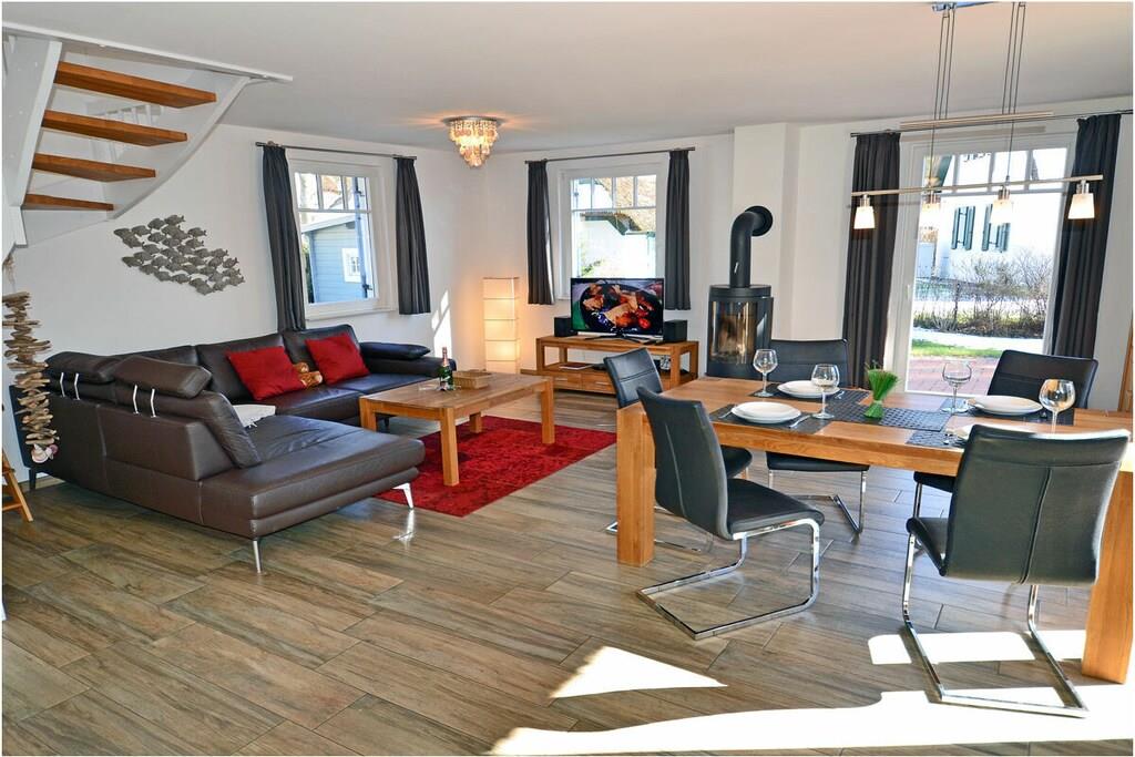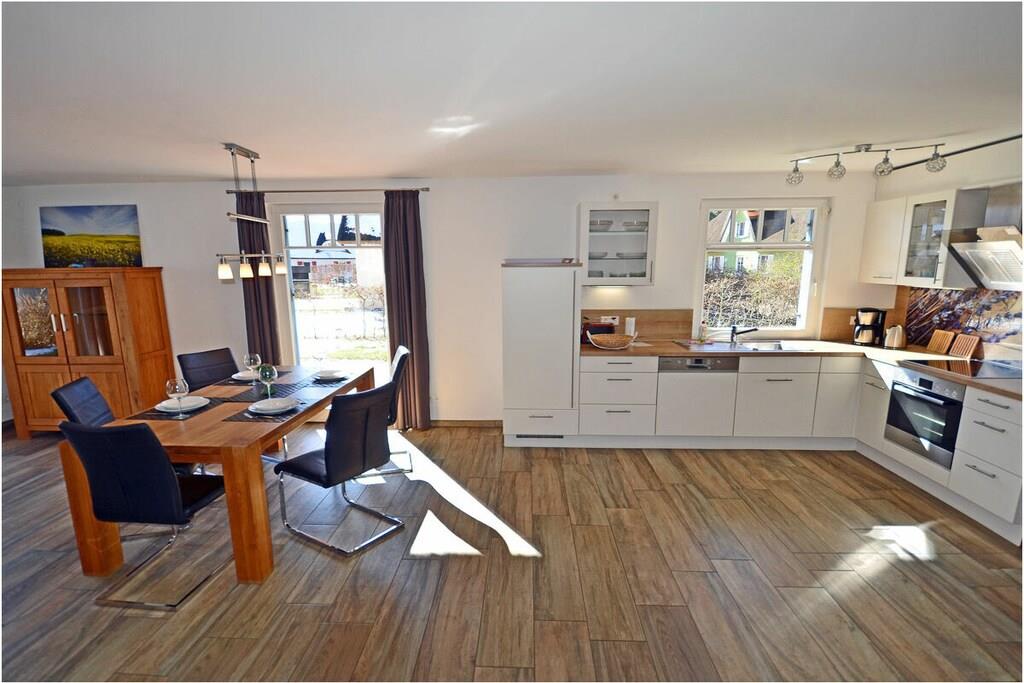 Erholungsort Glowe, über 2 Etagen, ruhige Lage, ca. 250m zum Sandstrand (Ostsee), ca. 500m zum Bodden Erdgeschoss: großzügiger Wohn- Essbereich mit Fußbodenheizung und Kamin, gemütliche Couchlandschaft mit Schlaffunktion für eine Person, TV/ Sat (Flatscreen), Blu-ray Player, DVD-Player, Radio/CD, offene komplett ausgestattete Einbauküche mit 4- Plattenherd (Ceranfeld), Backofen, Kühlschrank mit kleinem Gefrierfach, Geschirrspüler und diversen Elektrogeräten, 1. Bad mit Dusche und WC, Obergeschoss: 1. Schlafzimmer mit Doppelbett (180x200) und Kleiderschrank, 2. Schlafzimmer mit zwei Einzelbetten und Kleiderschrank, Insektengitter in den Schlafräumen vorhanden, 2. Bad mit Badewanne und WC, Terrasse mit Gartenmöbeln, 1 Strandkorb und Sonnenschirm, Grill vorhanden “unter Reet einen perfekten Urlaubstraum erleben” Reetdachgedecktes Haus, Grundstück ca. 450qm, Nichtraucher, Waschmaschine vorhanden, Liegewiese, Fahrradabstellmöglichkeit (Gartenhaus), 1 PKW- Stellplatz am Haus, Kinderschutzgitter im OG, Kinderbett, Kinderhochstuhl sowie Bollerwagen vorhanden, Einkaufsmöglichkeiten, Bäcker und Restaurant in unmittelbarer Nähe, optimale Rad- und Wandermöglichkeiten