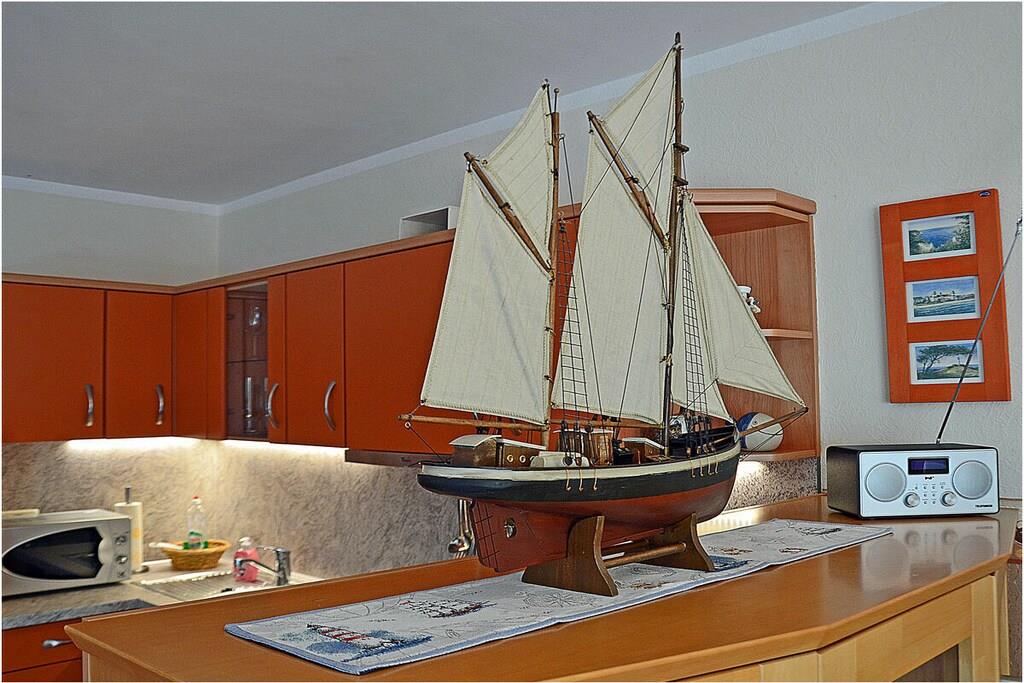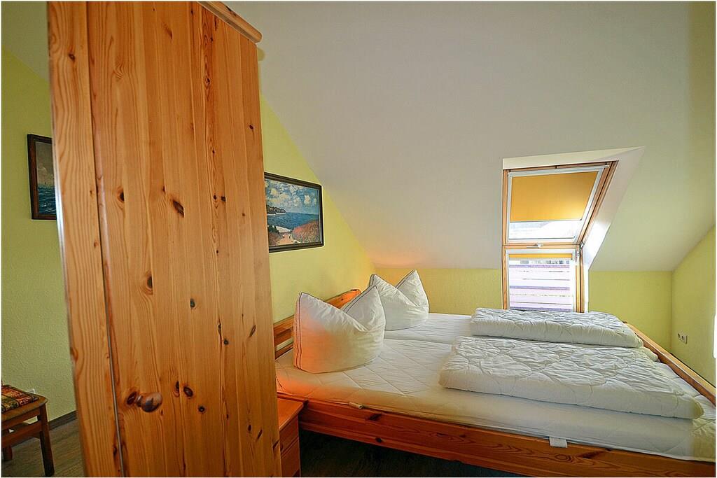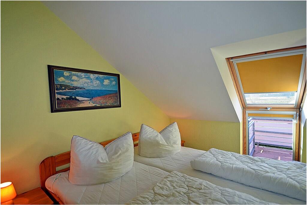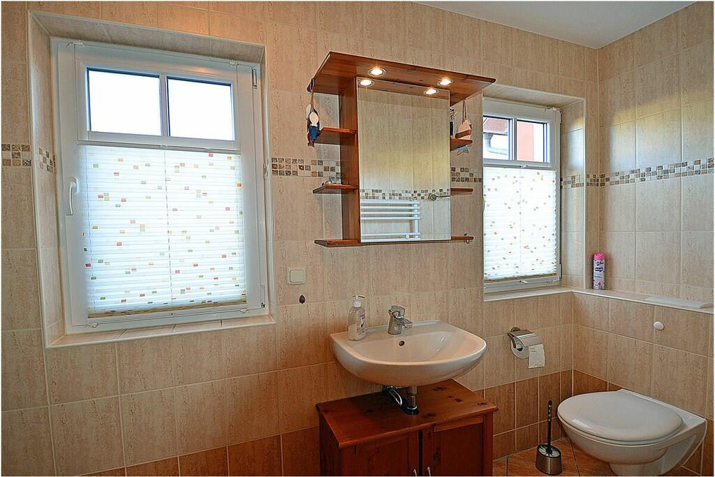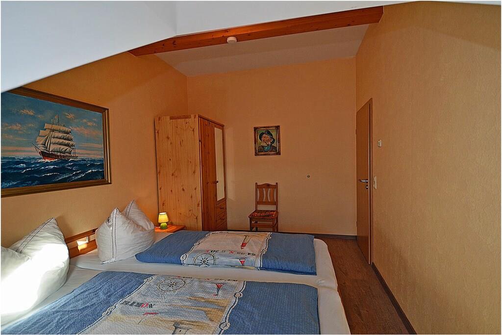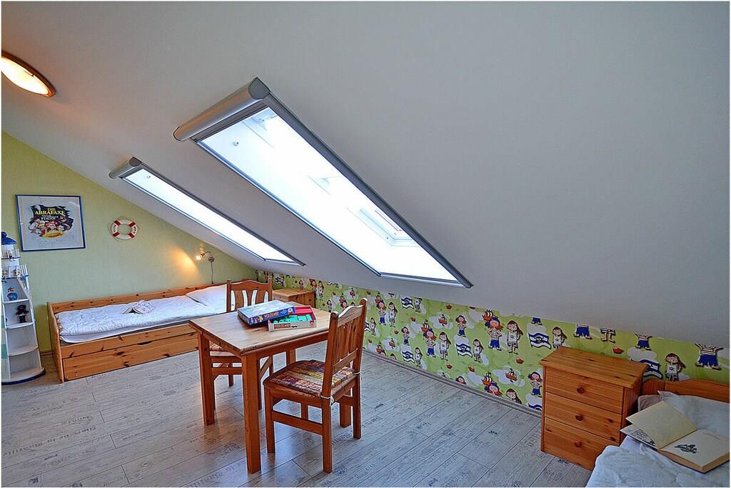 Erdgeschoss: großzügiger Wohn-, Essbereich mit Fußbodenheizung, gemütlicher Couchlandschaft und TV-Sat (Flatscreen), Musikanlage/CD-Player, DVD-Player, Blu-ray Player, Internet (WLAN), Gesellschaftsspiele und Bücher für gemütliche Abende, komplett ausgestattete moderne Einbauküche mit Esstisch, Ceranherd, Kühlschrank mit kleinem Gefrierfach, Geschirrspüler, Mikrowelle und diversen Elektrogeräten, großem Badezimmer mit Dusche/WC/Föhn. Obergeschoss: 2. Schlafzimmer mit je einem Doppelbett (getrennte Matratzen jeweils 90 x 200), Balkon und Kleiderschrank, 1. Kinderzimmer mit einem Einzelbett (90 x 200) und 1 Tandembett (90 x 2,00) (Einzelbett mit Ausziehfunktion (80 x 1,90)und Kleiderschrank, kleines Badezimmer mit Dusche und WC. Außenbereich: Terrasse mit gemütlichen Gartenmöbeln (6 Gartenstühle) und großem Sonnenschirm lädt zum Relaxen ein, Grillmöglichkeit besteht (Grill vorhanden), 1 PKW Stellplatz direkt am Objekt, Fahrradabstellmöglichkeiten (abschließbar) vorhanden.