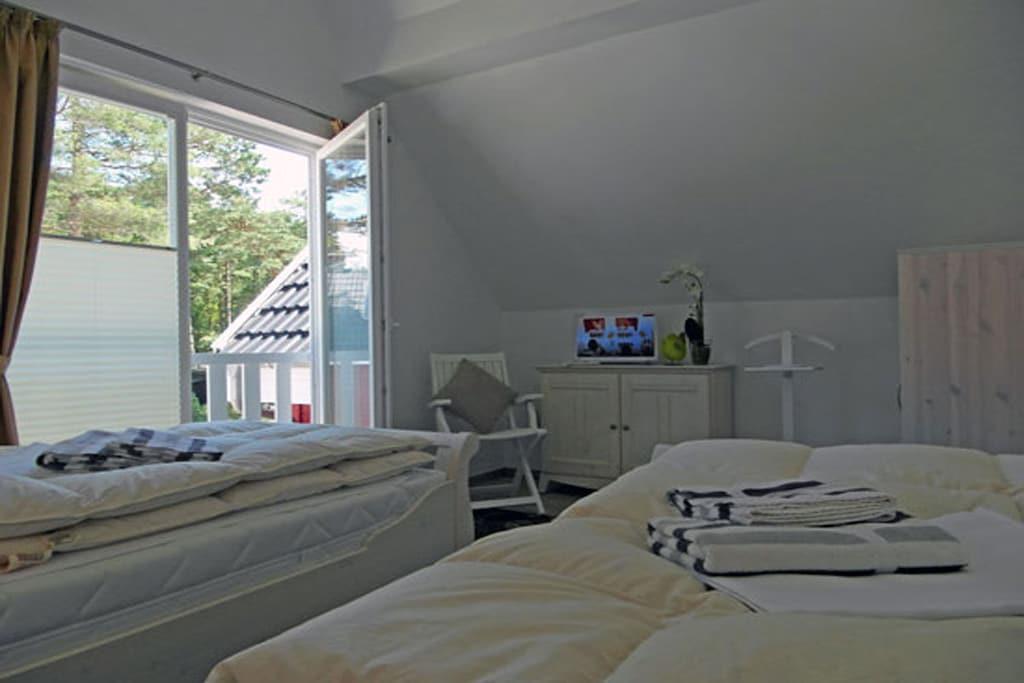 Erholungsort Glowe, über 2 Etagen, ca. 800 m zum Sandstrand (Ostsee), ca. 2 km zum Bodden Erdgeschoss: großzügiger Wohn- Essbereich mit Fußbodenheizung und Kamin, gemütliche Couchlandschaft mit Schlaffunktion, TV/ Sat (Flatscreen), Blu-ray Player, komplett ausgestattete Einbauküche mit Waschmaschine, 4- Plattenherd (Ceranfeld/ Induktion), Backofen, Kühlschrank mit kleinem Gefrierfach, Mikrowelle, Geschirrspüler und diversen Elektrogeräten, 1. Bad mit Infrarotsauna, Dusche und WC, Obergeschoss: 1. Schlafzimmer mit Doppelbett, Kleiderschrank und TV (Flatscreen), 2. Schlafzimmer mit zwei Einzelbetten, Kleiderschrank und TV (Flatscreen), Bad mit Badewanne und WC, Terrasse mit Gartenmöbeln und Sonnenschirm, Elektrogrill vorhanden -Skandinavische Doppelhaushälfte bis zu 4 Personen mit Sauna- Infrarotsauna ohne Gebühr, Waschmaschine ohne Gebühr, Gesellschaftsspiele für gemütliche Abende, Internet/ WLAN steht kostenlos zur Verfügung, 1 PKW- Stellplatz am Haus, Haustiere (nur Hunde) nach Absprache (Gebühr Haustier 5,-Euro pro Nacht)
