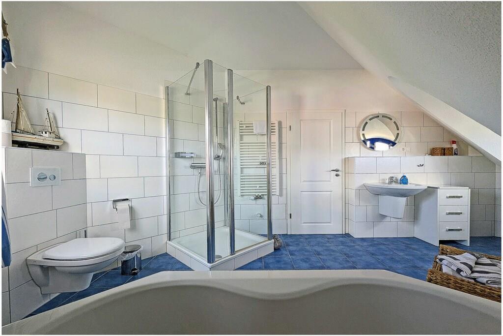 Ferienhaus „Fischerkoje“ *ein reetgedecktes Ferienhaus mit Wohlfühlcharakter* Erdgeschoss: Freuen Sie sich auf einen großzügigen Wohn-Essbereich mit Kamin und Fußbodenheizung, eine gemütliche Couchlandschaft, TV/Sat, Radio/CD, Internet/WLAN. Die offene komplett ausgestattete Einbauküche mit großem Esstisch bietet Platz für 6 Personen und lädt zu gemütlichen Kochabenden ein. 4-Plattenherd (Ceranfeld), Backofen, Kühlschrank mit großem Gefrierfach, Geschirrspüler, Mikrowelle und diversen Elektrogeräten. Hauswirtschaftraum mit Waschmaschine (ohne Gebühr) sowie div. Reinigungs-/Gerätschaften. Großzügiges Bad mit begehbarer ebenerdiger Dusche / WC und Infrarot – Wärmekabine – um auch an kühleren Tagen den Urlaub rundum genießen zu können. Obergeschoss: befinden sich 3 separate, gemütliche und geschmackvoll eingerichtete Schlafzimmer mit jeweils Doppelbett (1,80 x 2,00m), Kleiderschrank & Nachtschränkchen. 1 Bad mit Dusche | Eckbadewanne & WC Außenbereich: bietet Platz für Groß und Klein, auf der Terrasse finden 6 Personen Platz, Gartenmöbel (6 Gartenstühle + Tisch) sowie Sonnenliegen. Ein Grill steht den Gästen für gemütliche Abende zur Verfügung. Besonderes: Die schönste Zeit im Jahr – Freuen Sie sich auf erholsame Urlaubstage im Reethaus „Fischerkoje“ Das gemütliche Ferienhaus bietet beste Voraussetzungen für einen unvergessenen Urlaub auf der Sonneninsel Rügen. Das abgegrenzte Grundstück mit ca. 610 qm, Liegewiese und Terrasse lädt zum Entspannen ein. Waschmaschine steht Ihnen kostenfrei zur Verfügung. Bücher für Erwachsene und Kinder sowie verschiedene Gesellschaftsspiele stehen ebenfalls für Sie zur Verfügung. In Für die Kleinen gibt es in unmittelbarer Nähe (ca. 100m) einen großzügigen Kinderspielplatz der jede Menge Spaß und Abenteuer bietet. Fußbodenheizung & Kamin im Wohn- und Essbereich. Im Obergeschoss befinden sich die 3 Schlafzimmer. Das Ferienhaus „Fischerkoje“ ist ein Nichtraucherquartier. 2 PKW-Stellplätze befinden sich direkt am Objekt. Einkaufsmöglichkeiten, Bäcker, Restaurants und ein Getränkemarkt finden Sie in naher Umgebung. Optimale Rad- und Wandermöglichkeiten um die schöne Insel zu erkunden, runden das Angebot ab. Haustiere sind leider nicht erwünscht. Video zum Ferienhaus „Fischerkoje“VIDEO: https://www.youtube.com/watch?v=hwirHKIs-kU