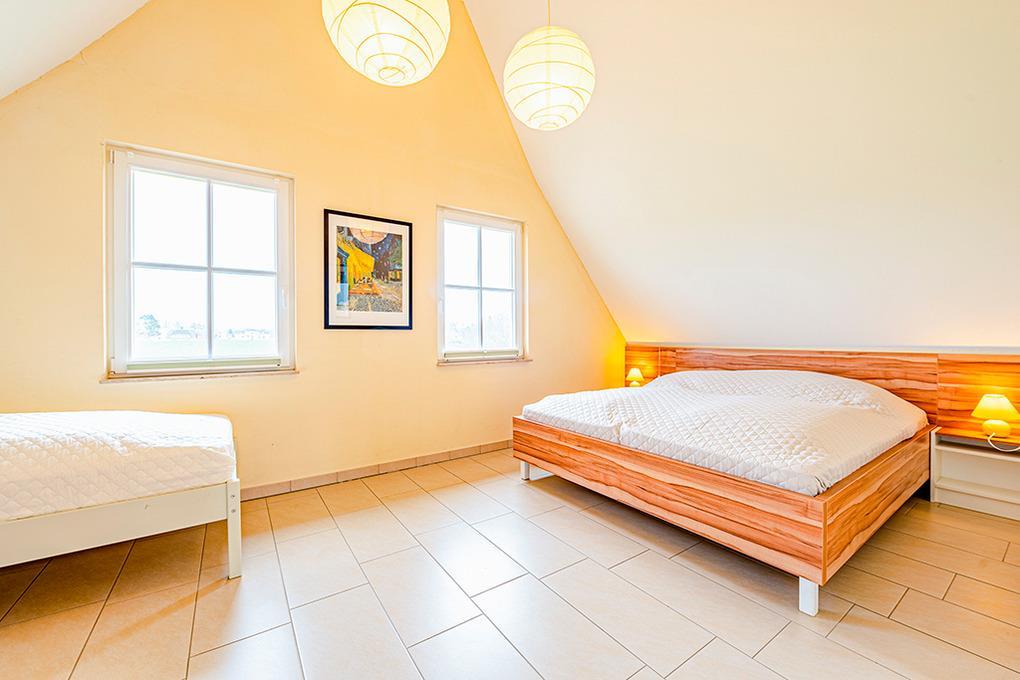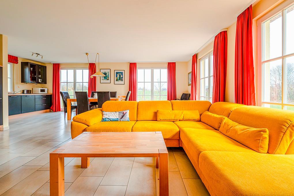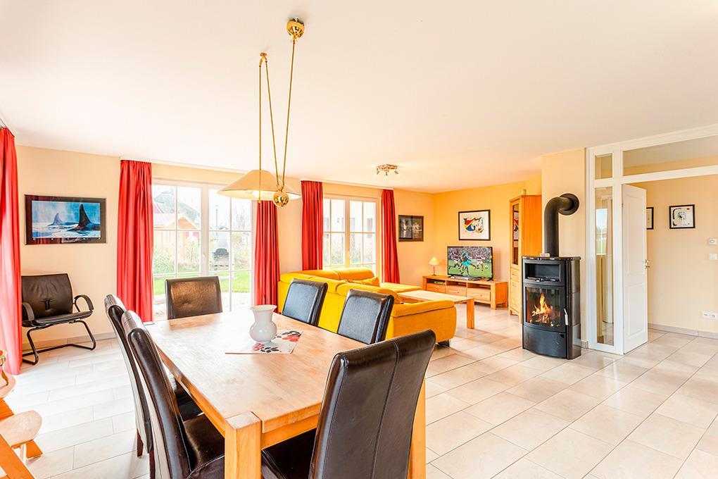 D 120.2A Ferienhaus 2-6 Pers.: Komfortables 4-Zimmerhaus mit 120 qm Wohnfläche über 2 Etagen. Parterre: Gemütlicher Wohn-/Essraum mit Kaminofen, Couchgarnitur, Sat-TV, Radio, Esstisch, sehr gut ausgestatteter Einbauküche (Backofen, Mikrowelle, Spülmaschine). Abstellraum mit Waschmaschine. Bad: Sauna, Du, Wb, WC. 1. Etage: Zwei Doppelzimmer. 2-Bettzimmer. Bad: Bw, Wb, WC.