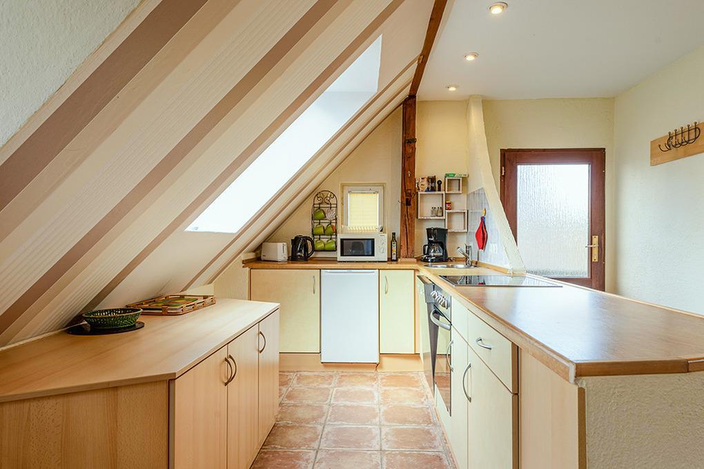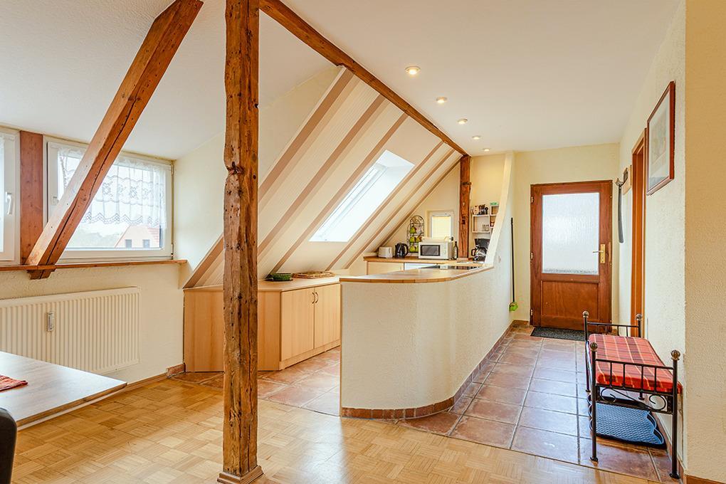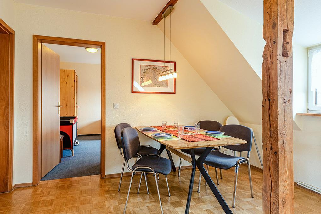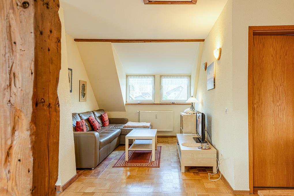 D 120.25 Wohnung 2-4 Pers.: Gemütliche 3-Zimmerwohnung mit 79 qm Wohnfläche, 1 Etage, Dachgeschoss mit Schrägen. Wohn-/Essraum mit Couchgarnitur, Sat-TV, gut ausgestatteter Küchenzeile (Backofen, Mikrowelle, Spülmaschine). Doppelzimmer mit begehbarem Kleiderschrank. 2-Bettzimmer. Bad: Eck-Bw, Du, Wb, WC.