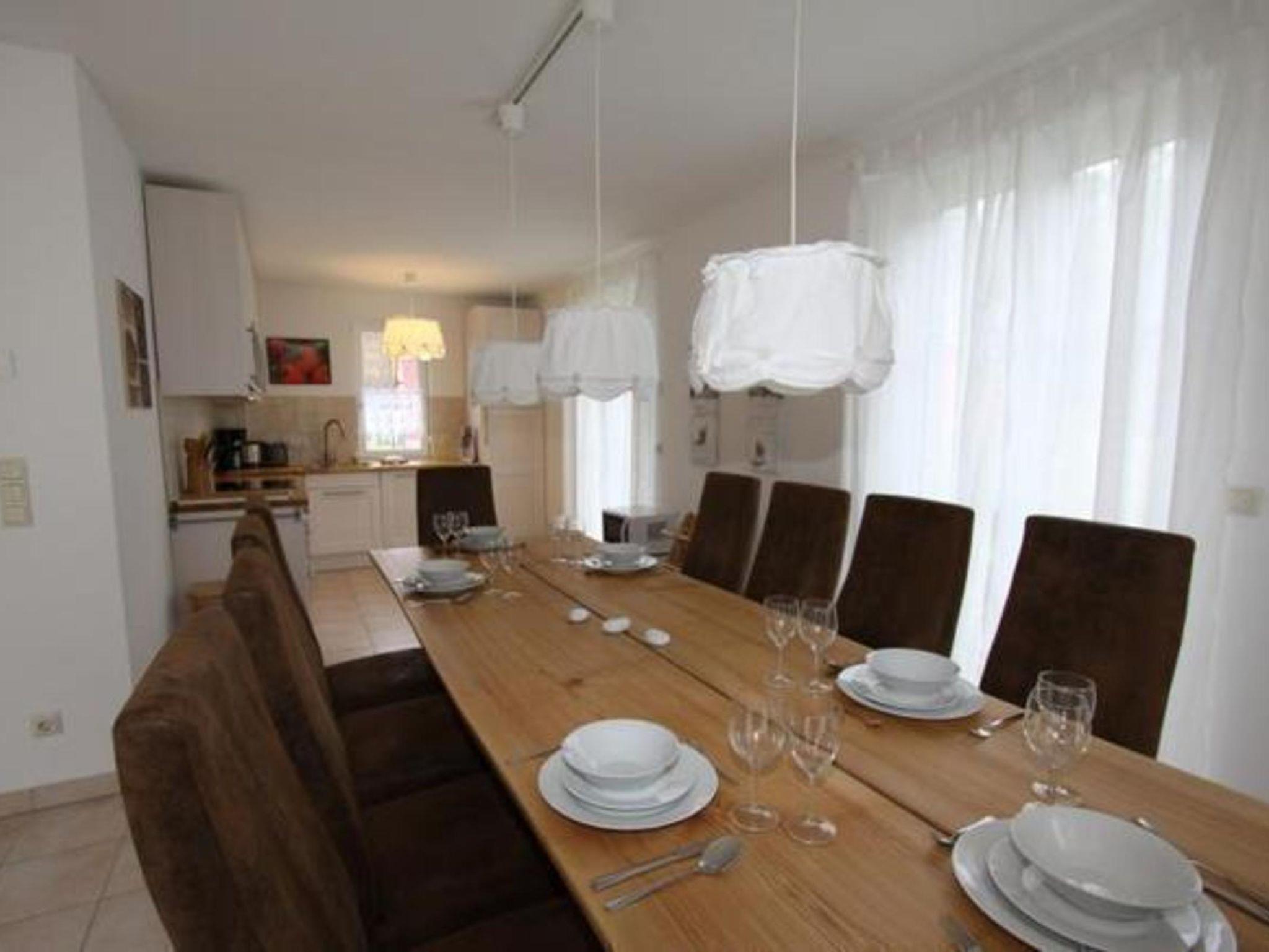 Ferienhaus Windrose ist ein modernes, 2012 errichtetes freistehendes Haus mit Garten in ruhiger, meernaher Lage, das hochwertig und familienfreundlich gebaut und ausgestattet ist. Mit seinen ca.125 m² Wohnfläche und ca. 500 m² Grundstücksfläche bietet es Platz für bis zu 10 Personen und 1 Baby. Es ist im modernen Landhausstil mit maritimer Atmosphäre eingerichtet, Vorhandene Räume: EG (Fliesenboden, Fußbodenheizung, elektrische Rollläden): Windfang mit Garderobe - Esszimmer mit großem Massivholz-Esstisch und offener, voll eingerichteter Küche (ausgestattet mit Herd - modernes Induktionskochfeld - und Backofen, Mikrowelle, großem Kühlschrank einschl. Gefrierfach, Kaffeemaschine, Toaster und Wasserkocher, Geschirrspüler sowie mit allen notwendigen Küchenutensilien und kleinen Extras (wie z.B. Kindergeschirr und Kinderbesteck); - Wohnzimmer mit großem Flachbild-TV einschl. DVD-Player inkl. Blu-ray sowie CD-Player/Radio und Kaminofen - Tageslichtbad - Abstellraum mit Waschmaschine und Trockner (Münzautomaten) 1. OG (Fliesenboden, Fußbodenheizung): 3 geräumige Schlafzimmer mit großen Schränken, Betten aus Buchenholz (2 x mit Doppelbett jeweils 1.80 x 2,00 m und 1 x mit zwei Einzelbetten jeweils 0,90 x 2,00 m, die auch zusammengestellt werden können; 1 Schlafzimmer mit Babybett 0,60 x 1,20 m ausgestattet; Insektenschutzgitter und Verdunkelungsgardinen an den Fenstern - 1 Flachbild-TV im 1. OG - 1 geräumiges Tageslichtbad mit Doppelwaschbecken, Dusche, WC, Föhn, Abstellmöglichkeiten, Haken, Handtuchheizkörper, Insektenschutzgitter - Abstellraum für Koffer 2. OG (Laminat, Fußbodenheizung): Dachstudio mit 2 Einzelbetten, die auch zusammengestellt werden können; Umgestaltung zu einem Schlafzimmer für 4 Personen mit hochwertigen Massivholzbetten (jeweils 0,90 x 2,00 m) möglich; Verdunkelungsgardinen; Sitzecke mit 2 Sesseln und Flachbild-TV Außenbereich: Garten mit ca. 500 m² Grundstück und einer Terrasse in Südausrichtung, ausgestattet mit Tisch(en), Stühlen, großem Sonnenschirm, 4 Sonnenliegen und Grill; 2 PKW-Stellplätze, Garage gg. Aufpreis; Das Ferienhaus ist ein Nichtraucher-Haus. Haustiere sind nicht erlaubt.