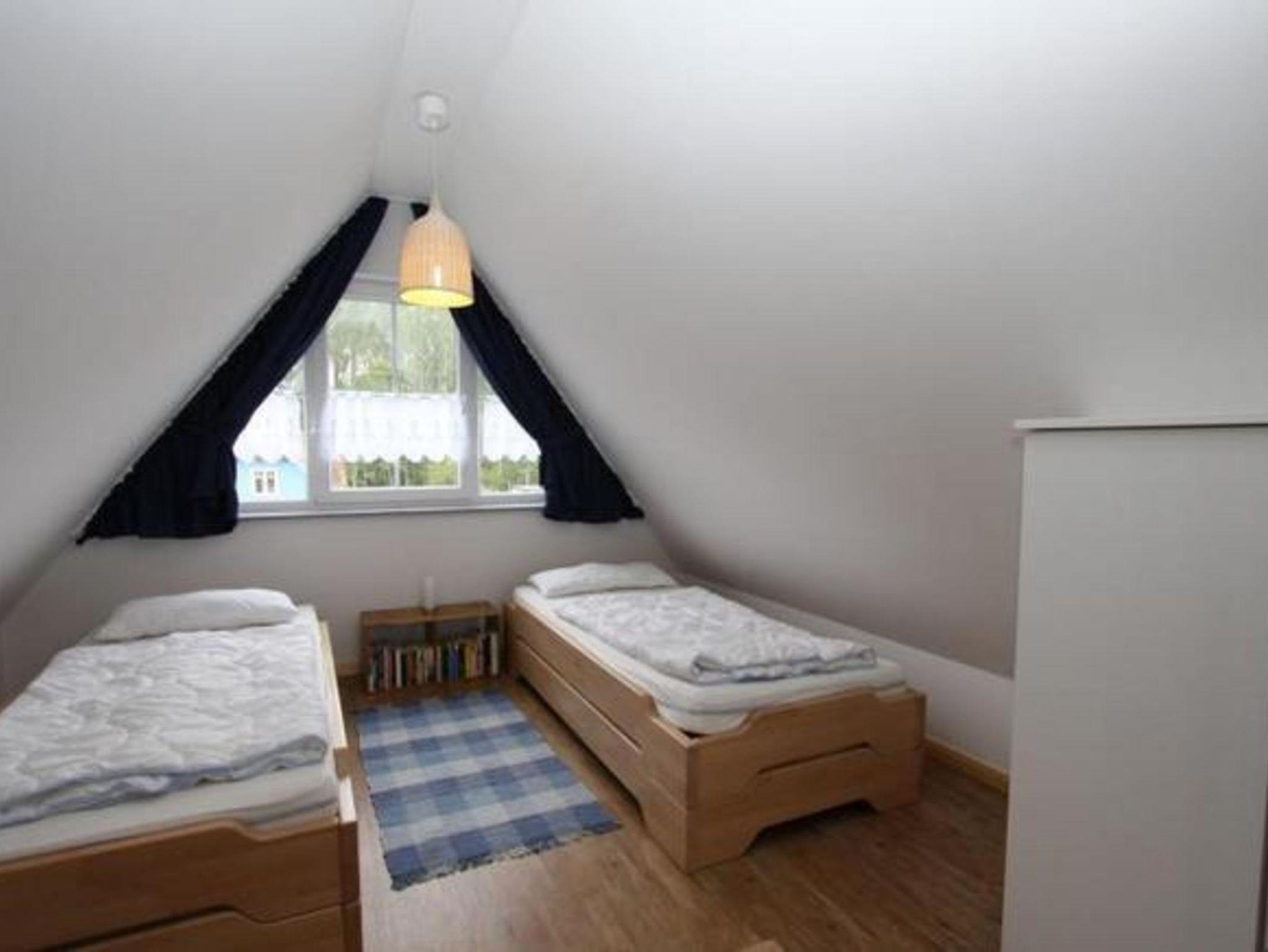 Im 1. Obergeschoss finden Sie 3 geräumige Schlafzimmer mit großen Schränken und Betten aus Buchenholz, 2 x mit Doppelbett (jeweils 1.80 x 2,00 m) und 1 x mit zwei Einzelbetten, die auch zusammengestellt werden können (jeweils 0,90 x 2,00 m). 1 Schlafzimmer ist mit einem Babybett (0,60 x 1,20 m) ausgestattet. Insektenschutzgitter an den Fenstern halten die Schlafräume frei von Plagegeistern. Verdunkelungsgardinen sorgen für einen erholsamen Schlaf. Im 1. OG befindet sich ein Abstellraum für die Koffer. Über das 2. Obergeschoss erstreckt sich ein Dachstudio mit einem Schlafzimmer für 2 Personen (das bei Bedarf auch zu einem Schlafzimmer für 4 Personen mit hochwertigen Massivholzbetten (jeweils 0,90 x 2,00 m) umgestaltet werden kann. Auch hier sorgen Verdunkelungsgardinen für einen erholsamen Schlaf. Eine kleine Oase am Westfenster mit 2 Sesseln bietet Möglichkeit zur Entspannung. Von hier aus kann man auch - hinter Reetdächern und Wiesen - einen Zipfel Meer entdecken.