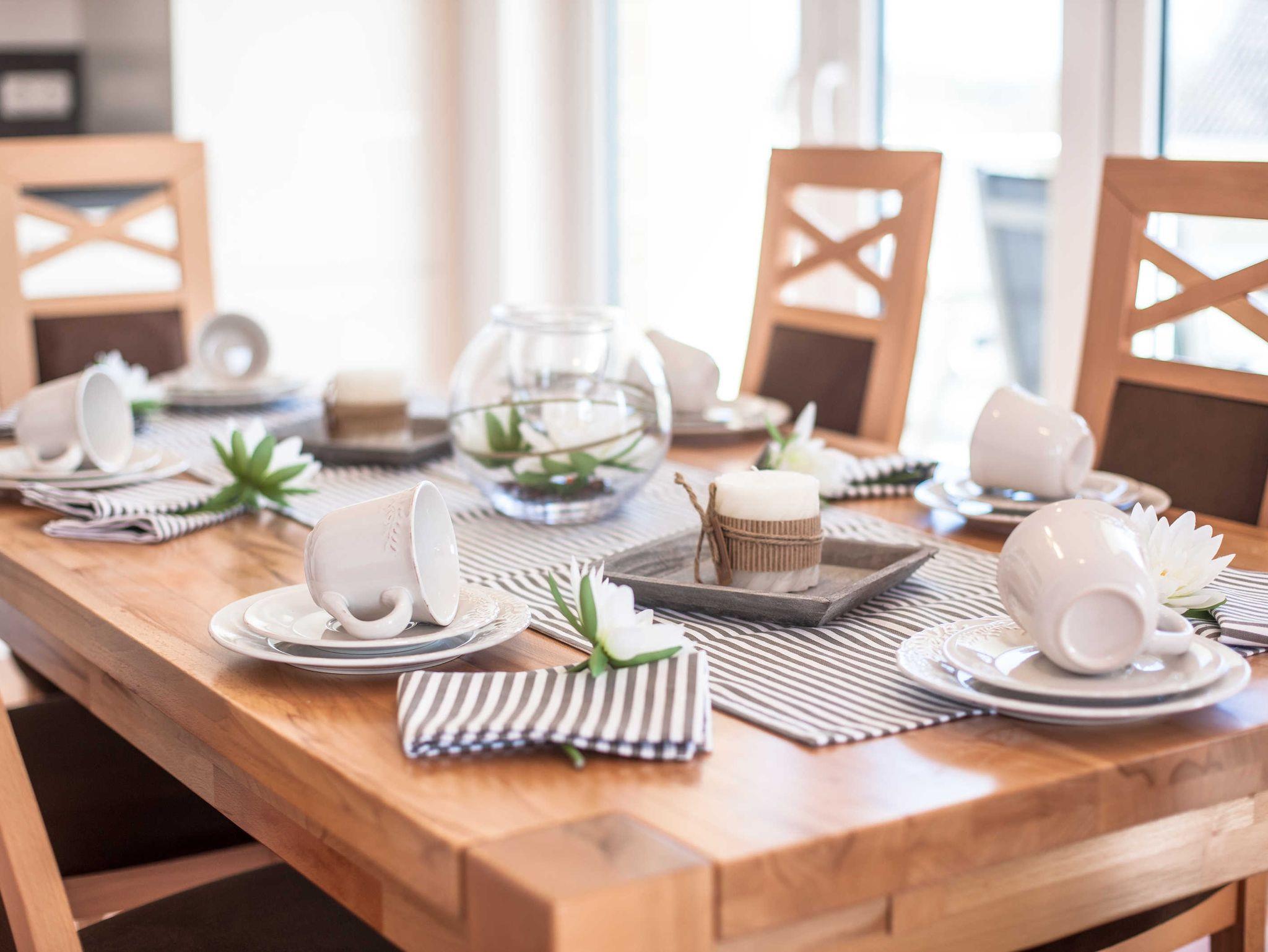 Die Ferienwohnung ist modern und mit schönen Holzmöbeln eingerichtet.