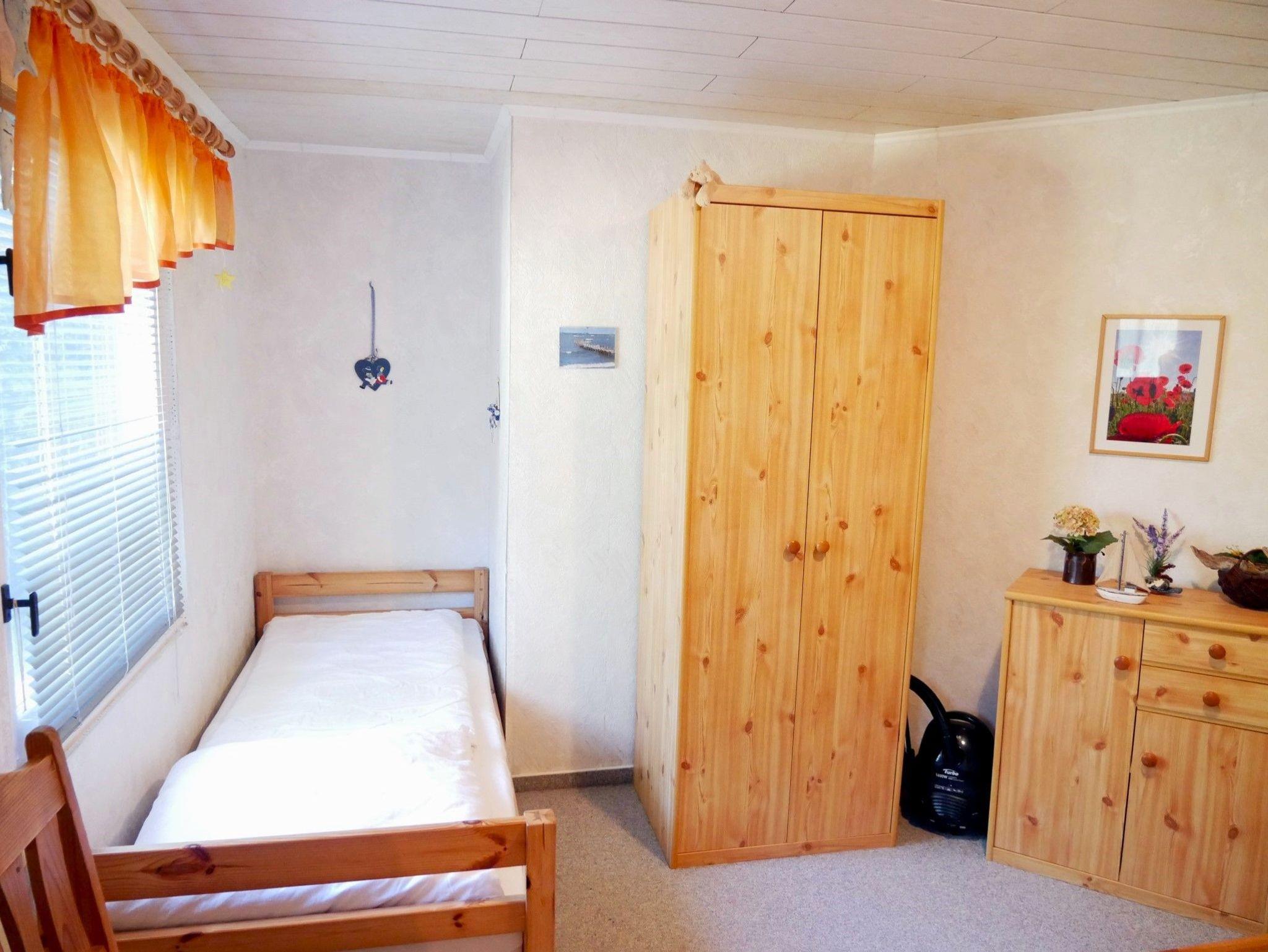 • ein Schlafzimmer mit Doppel- und Einzelbett sowie einem Kleiderschrank,