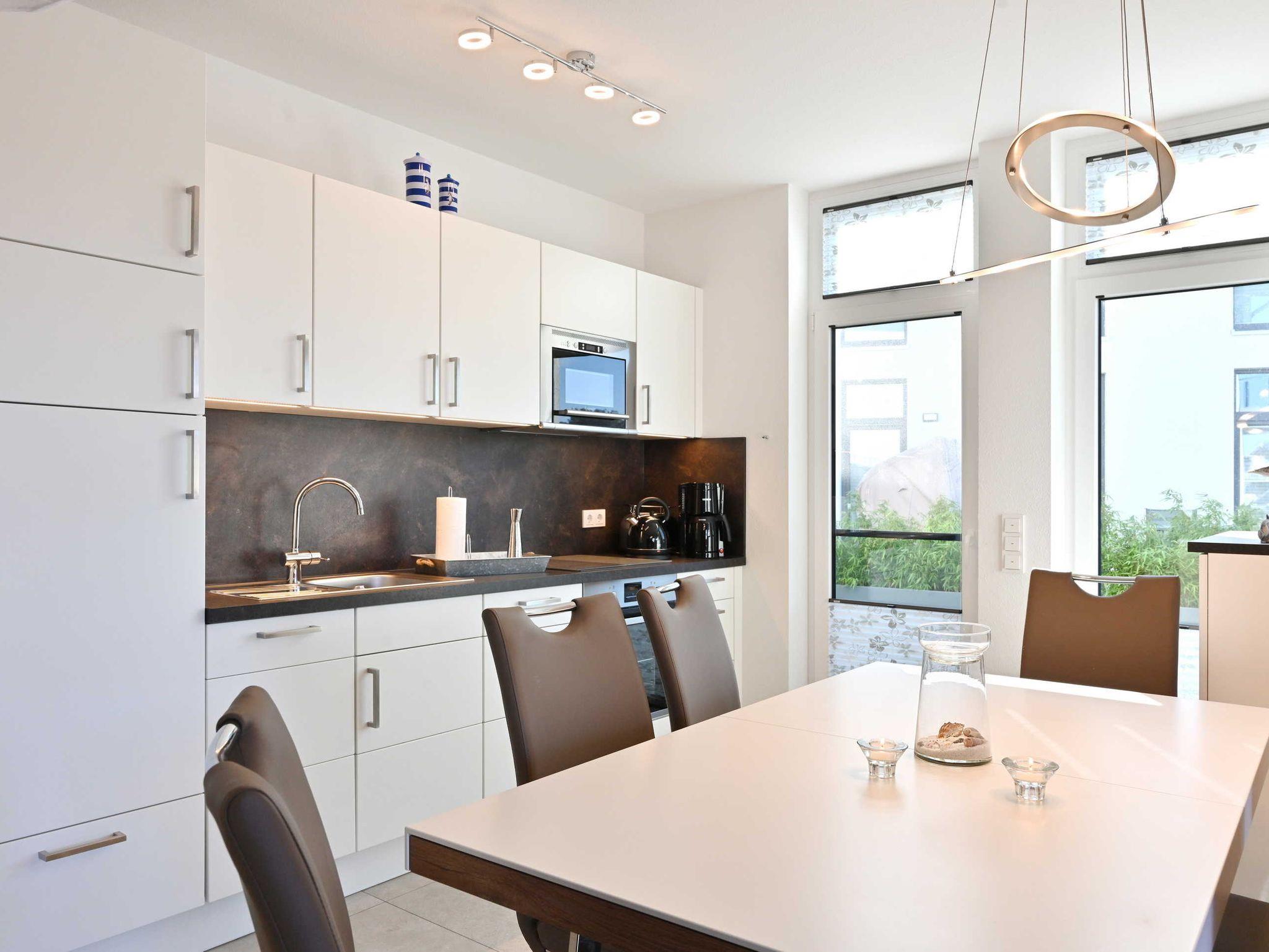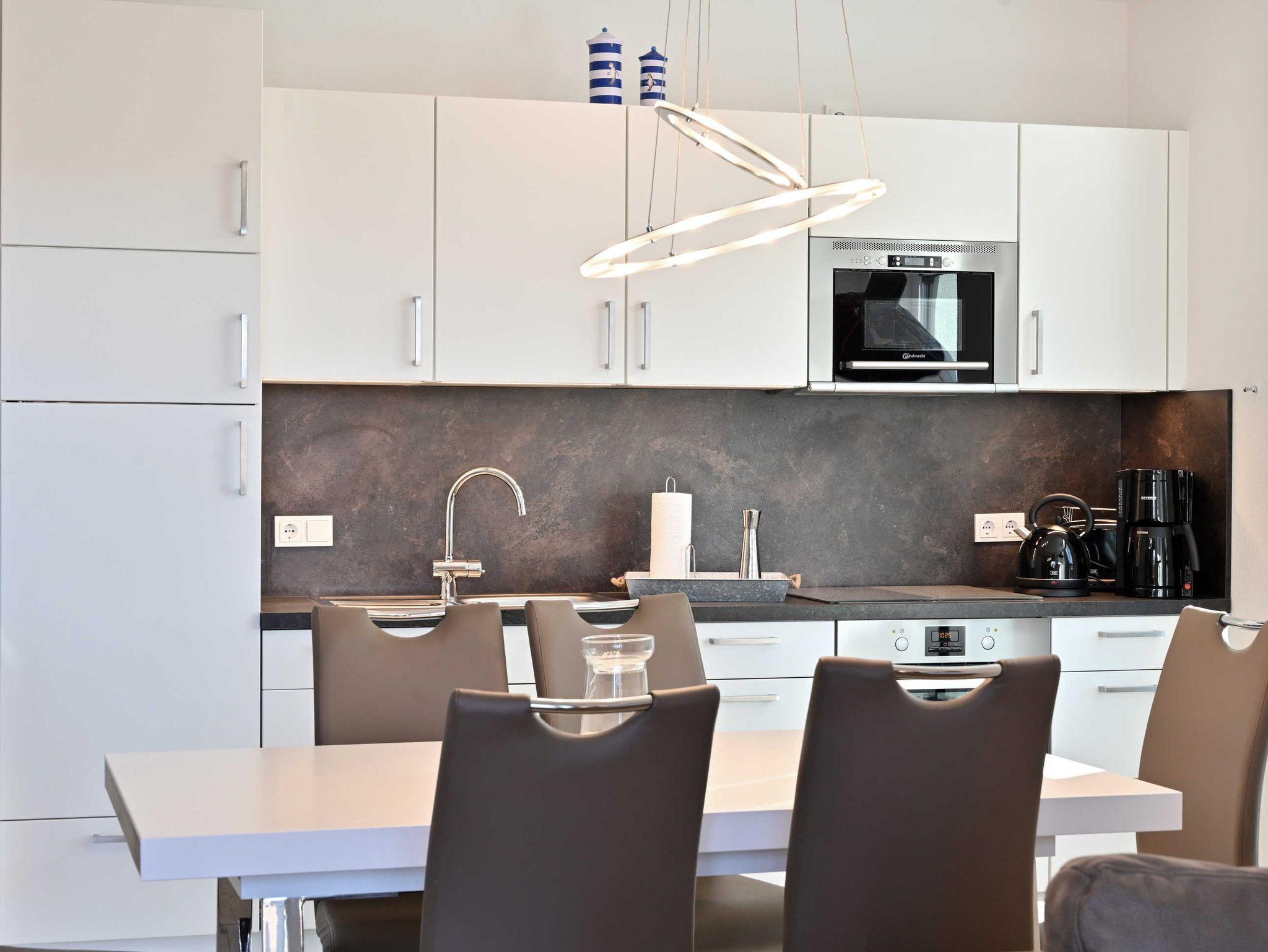vollausgestattete Küche mit Spülmaschine, Backofen, Gefriermöglichkeit