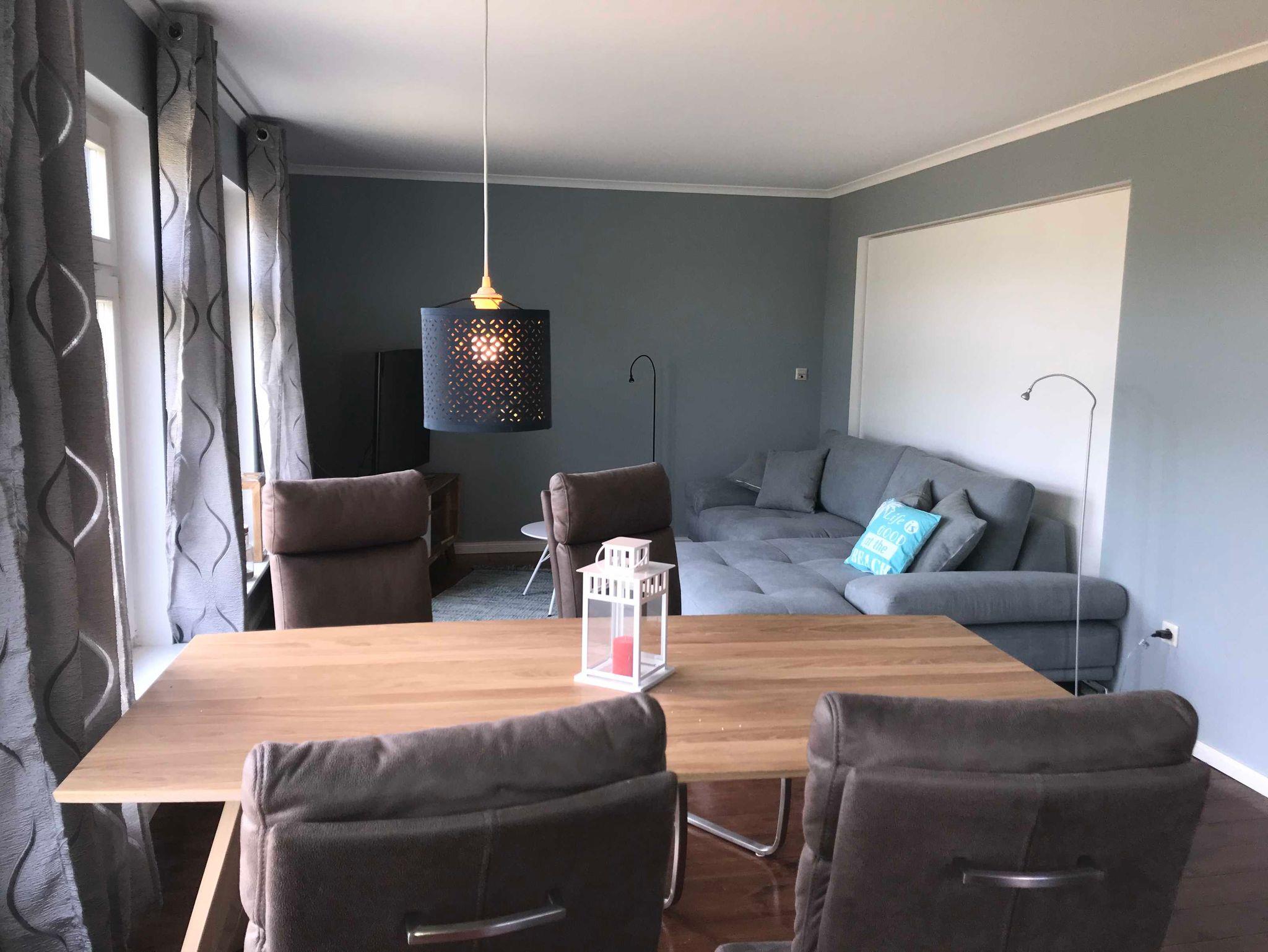 Vom Wohnzimmer mit Essbereich und großer Couch schauen Sie geradewegs in den idyllischen Garten. Im Garten steht für die Gäste der Ferienwohnungen Lilly (im Erdgeschoss) und Fritzi (im Obergeschoss) ein Grill bereit. Auf dem Grundstück steht kostenfrei ein Parkplatz zur Verfügung.