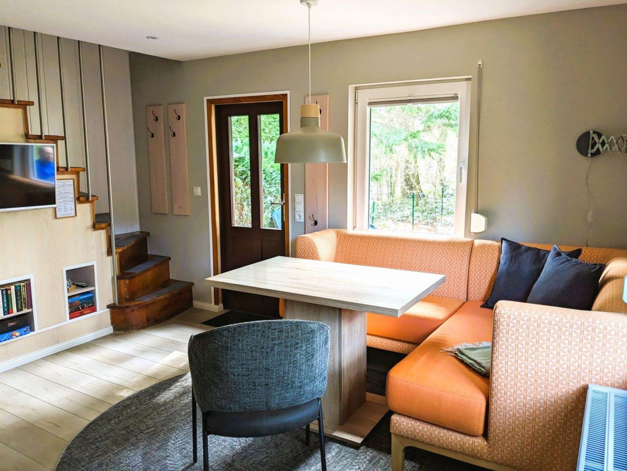 Das Haus ist folgendermaßen ausgestattet: Komplett ausgestattete offene Küche (u. a. mit Herd und Backofen, Kühlschrank, Geschirrspüler, Mikrowelle, Kaffeemaschine, Wasserkocher, Toaster), Schlafzimmer im 1. Obergeschoss mit zwei Einzelbetten (0,90m x 2,00m), Fernseher, Bad mit Dusche und WC, Terrasse mit Sitzgelegenheit, großer Garten mit Sitzecke, Holzkohlegrill und Parkplatz auf dem eingezäunten Grundstück. Bitte beachten Sie, dass eine steile Treppe zum Schlafzimmer führt. Haustiere sind im Bungalow nicht erlaubt. Das Wäschepaket (Bettwäsche und Handtücher) kann für 25,00 EUR pro Person hinzugebucht werden.