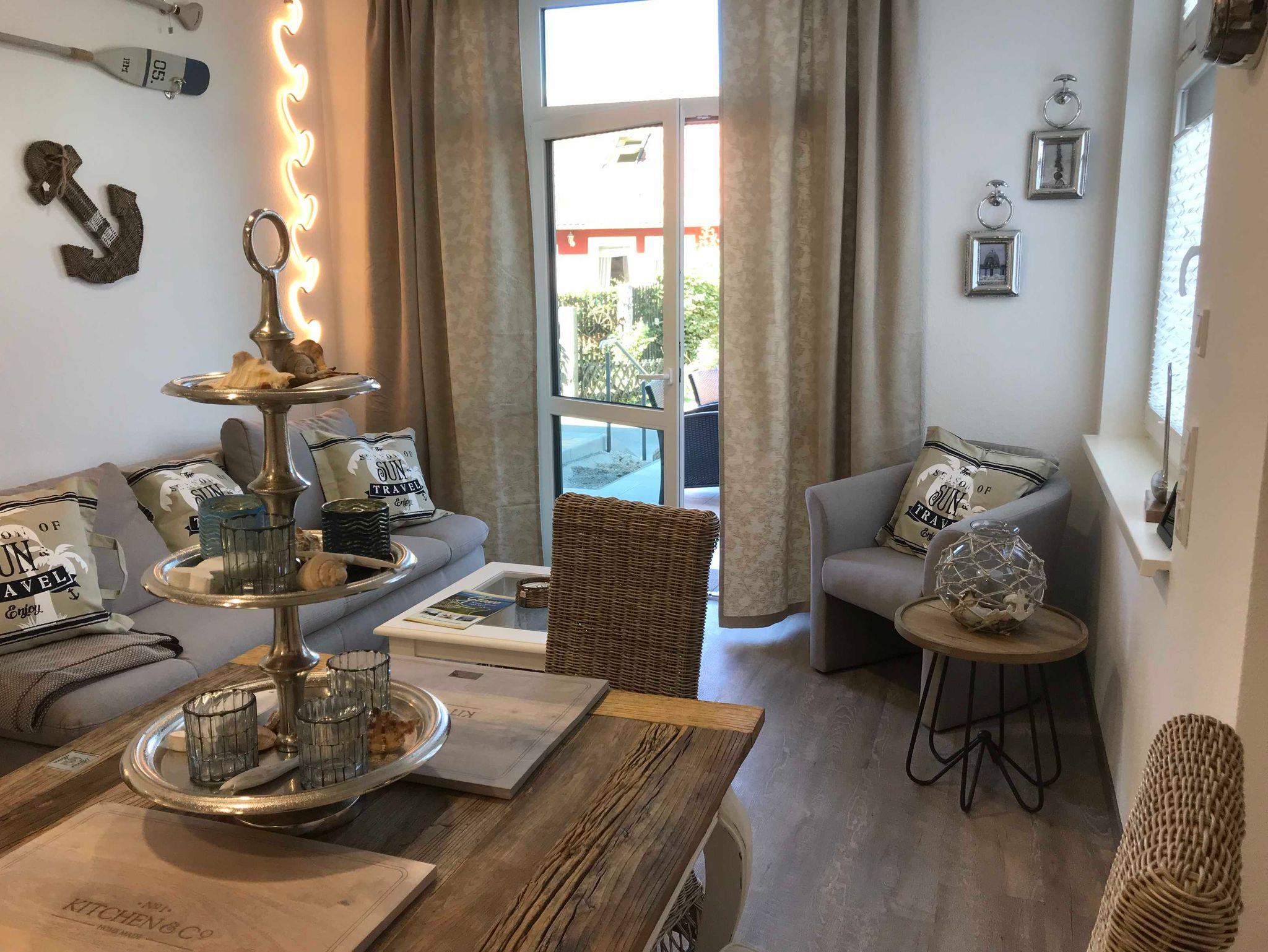 Die Ferienwohnung Strandgut im Boddenmarkt Glowe bietet Platz für 3 Personen. Auf der Terrasse relaxen Sie in Loungemöbeln. Sonnenliegen sind ebenfalls vorhanden. Den wunderschönen weißen Sandstrand der Schaabe erreichen Sie in zwei Gehminuten.