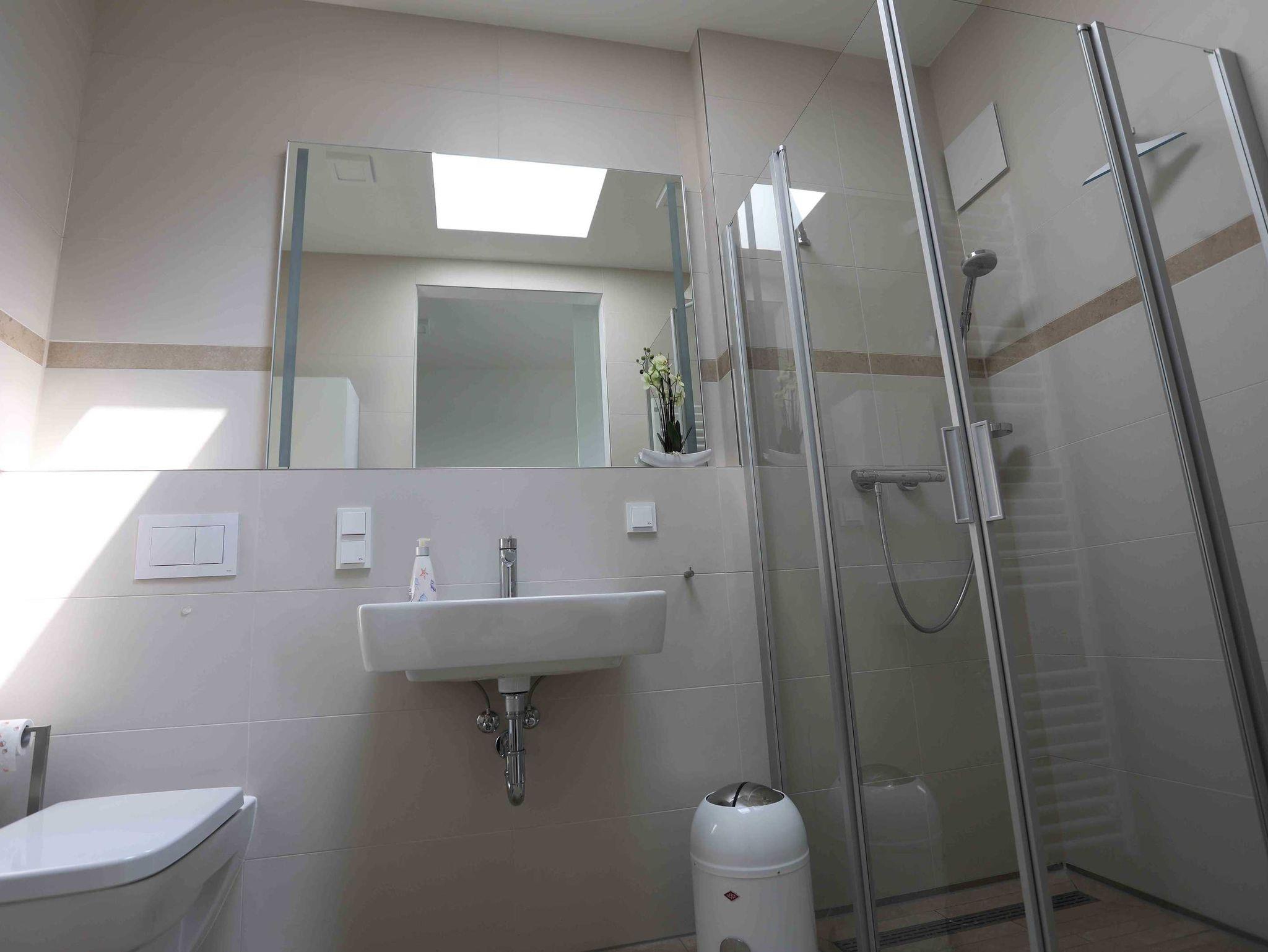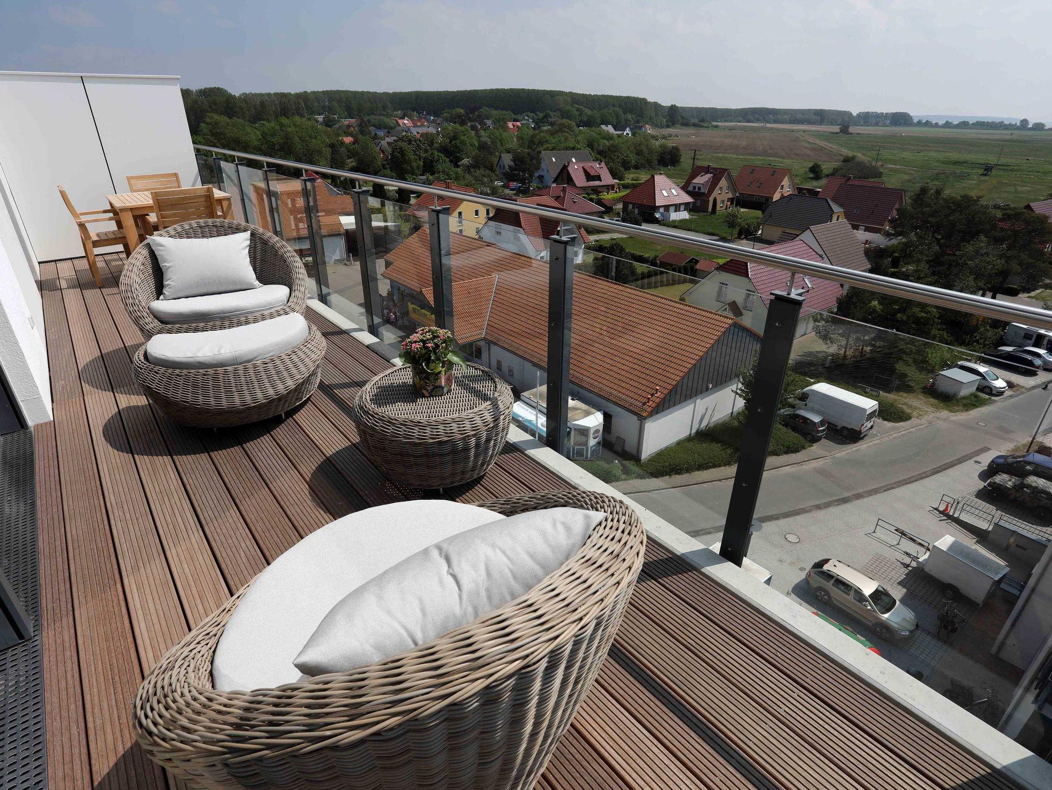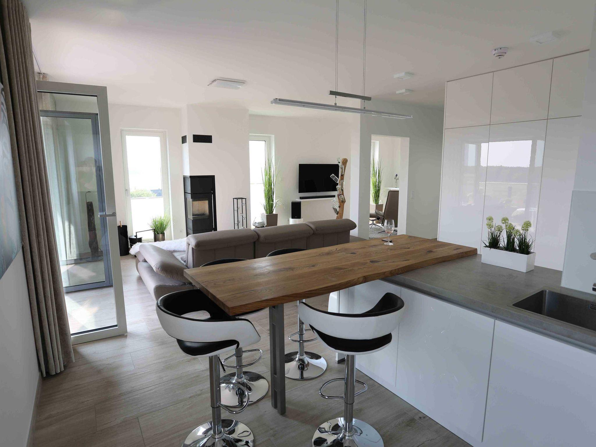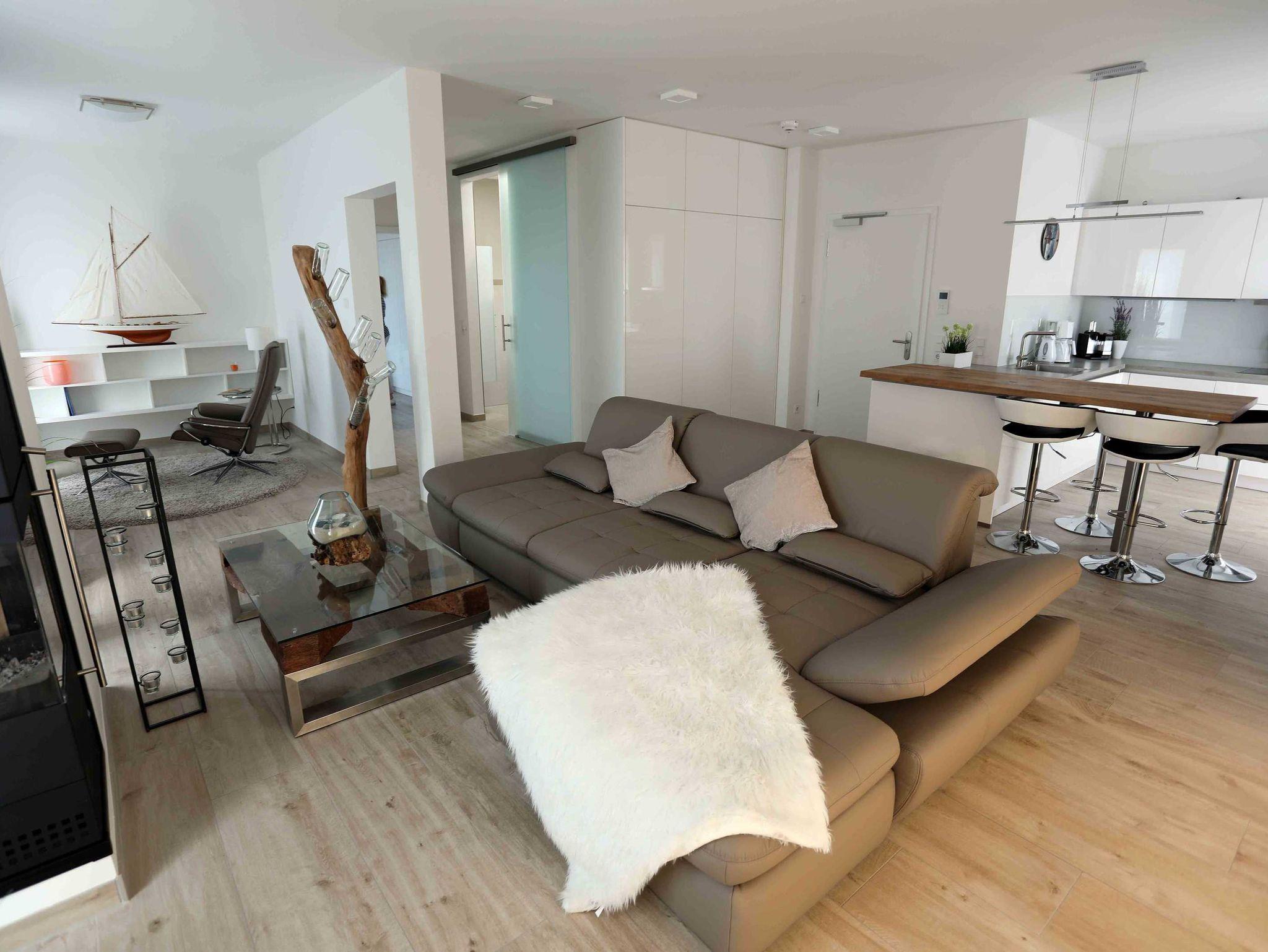 Die Nichtraucherwohnung verfügt über ein Schlafzimmer mit einem 1,80m breiten Boxspringbett mit durchgehender Matratze und freistehender Badewanne. Das Badezimmer beherbergt eine Dusche. Sie ist ideal, um zwei Personen eine romantische und besondere Zeit zu bieten. Selbst bei schlechtem Wetter hat man in dieser lichtdurchfluteten Wohnung einen äußerst angenehmen Aufenthalt. Der Wohnbereich ist mit einem großen OLED-Flachbild-Fernseher und einer entsprechenden Heimkino-Musikanlage sowie einem Blu-ray/DVD-Player ausgestattet. Ein umfangreiches Angebot an Büchern sorgt für entspannte Momente. Selbstverständlich ist hier WLAN verfügbar. Der PKW Stellplatz befindet sich in der Tiefgarage des Nebengebäudes.