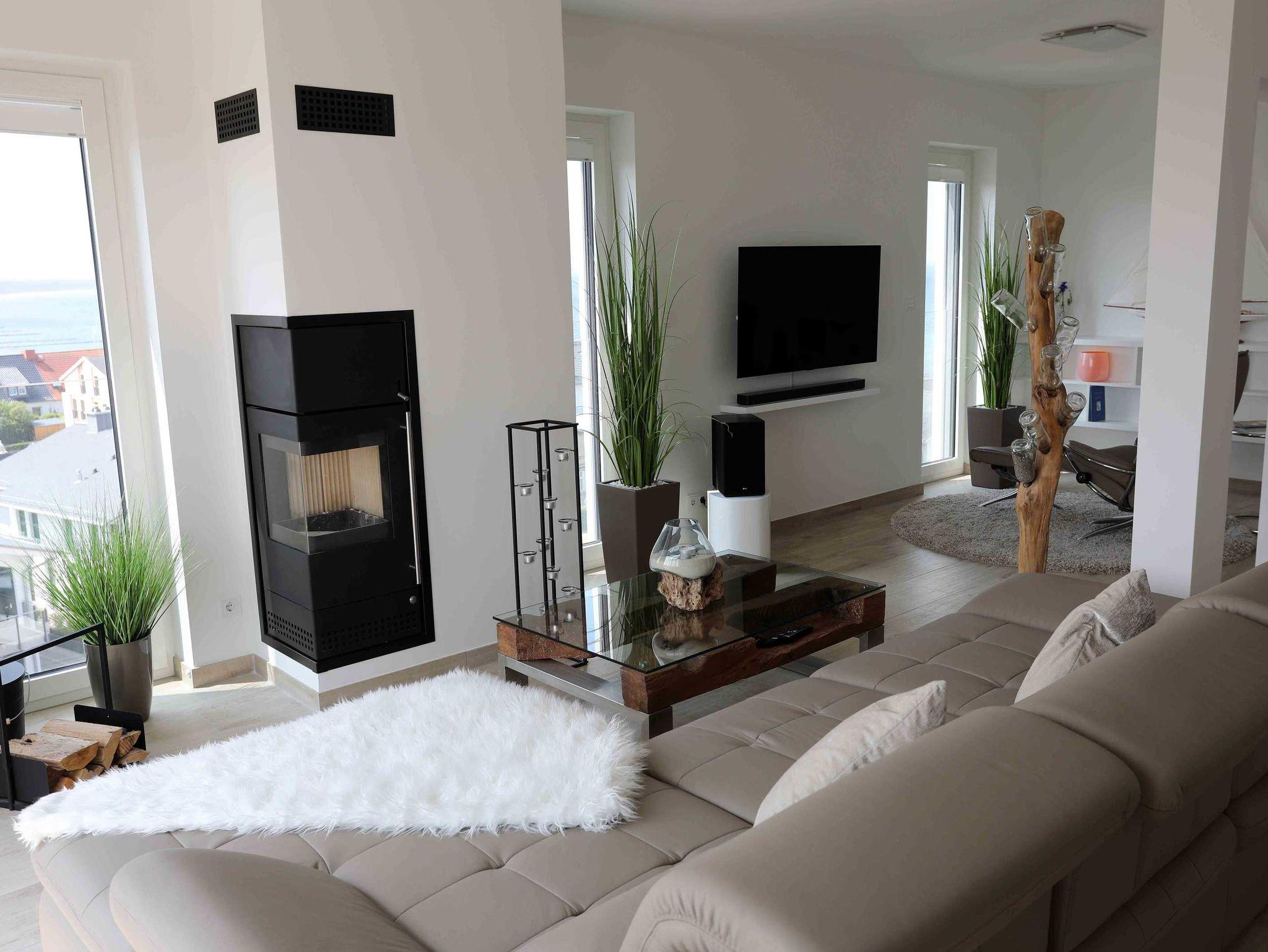 Die Ferienwohnung Kapkieker im Haus Seezeichen im Ortzentrum von Glowe begeistert mit grandiosen Ausblicken auf die Tromper Wiek und den 9 km langen Sandstrand der Schaabe sowie den Großen Jasmunder Bodden. Die elegant und modern ausgestattete großzügige Ferienwohnung bietet neben einer offenen Küche, einen Lesebereich mit direktem Blick auf die Ostsee, eine große Kuschelcouch vor einem Kamin und auch eine freistehende Badewanne im Schlafzimmer mit Meerblick, aus der man wunderbare Sonnenuntergänge beobachten kann. Auf zwei Balkonen genießt man Sonne und Meer.