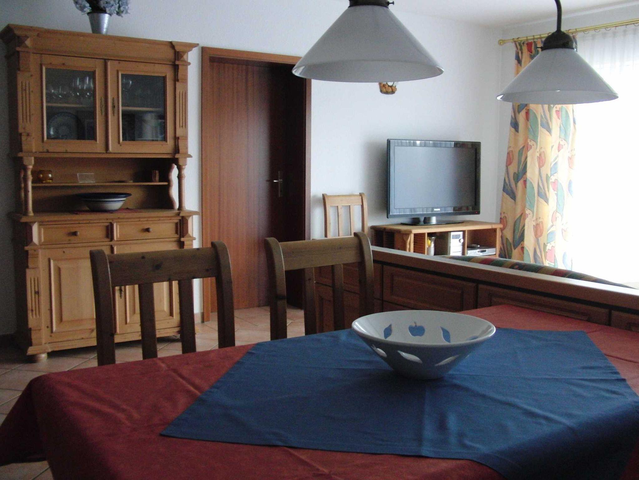 Die Ferienwohnung ist komplett ausgestattet. Ein großer Wohnraum mit Küche und Sitzecke, zwei Schlafzimmer, ein geräumiges Bad und natürlich die Terrasse im Grünen (mit Regen-und Sonnenmarkise) warten auf Sie. Ihr Parkplatz befindet sich direkt neben der Wohnung.