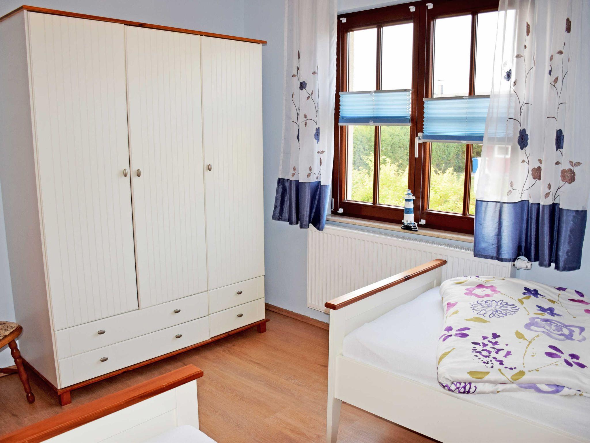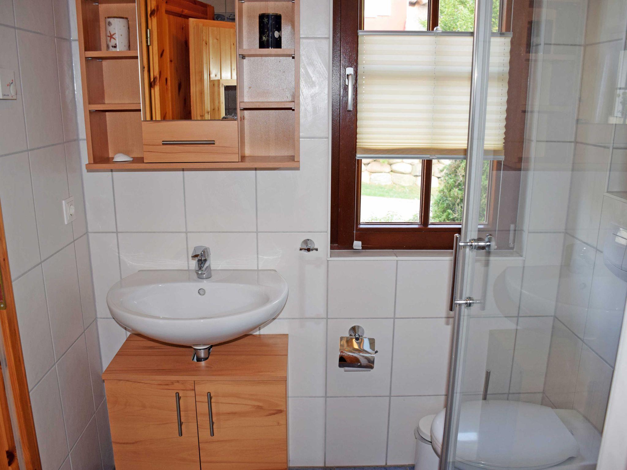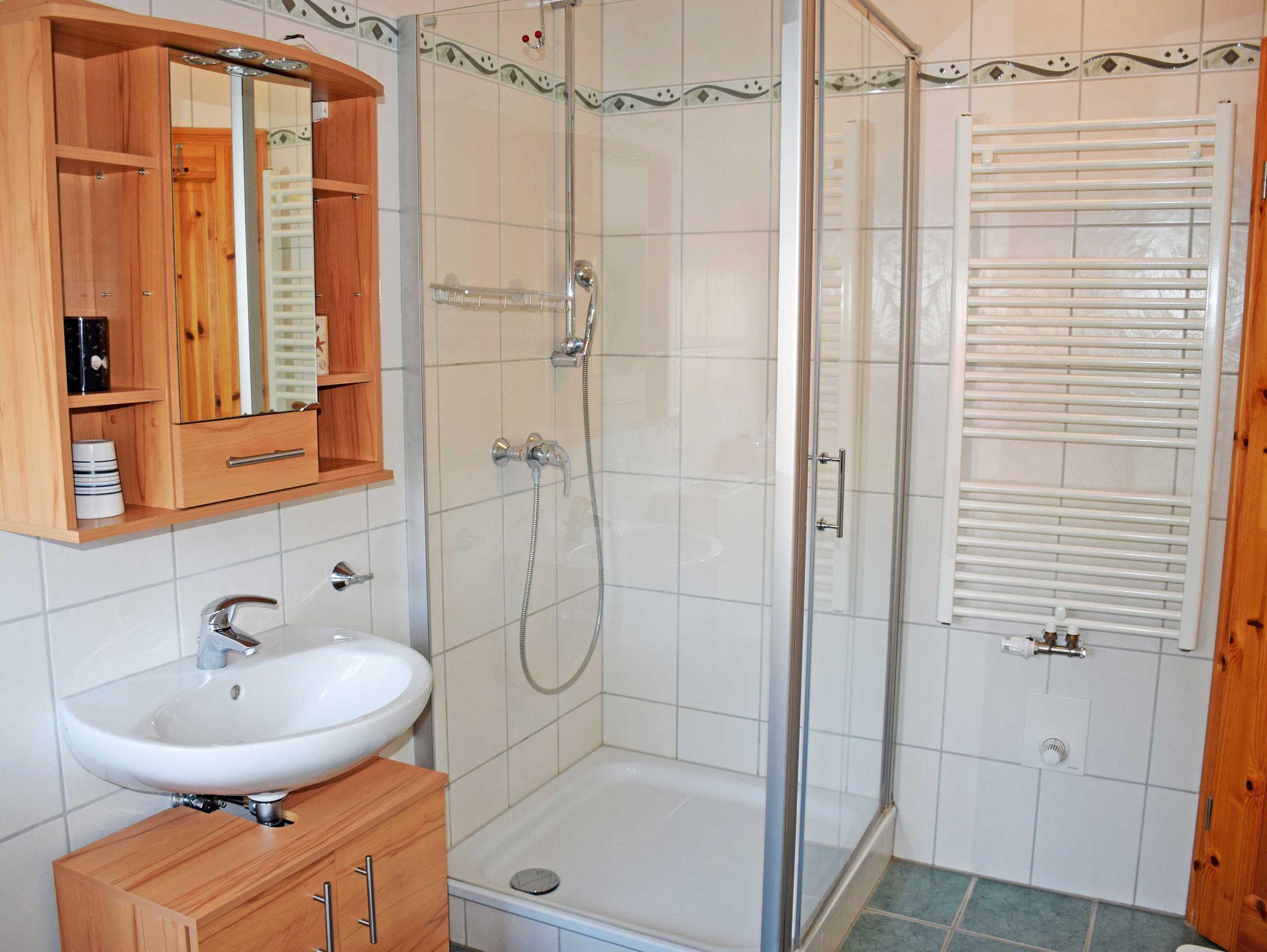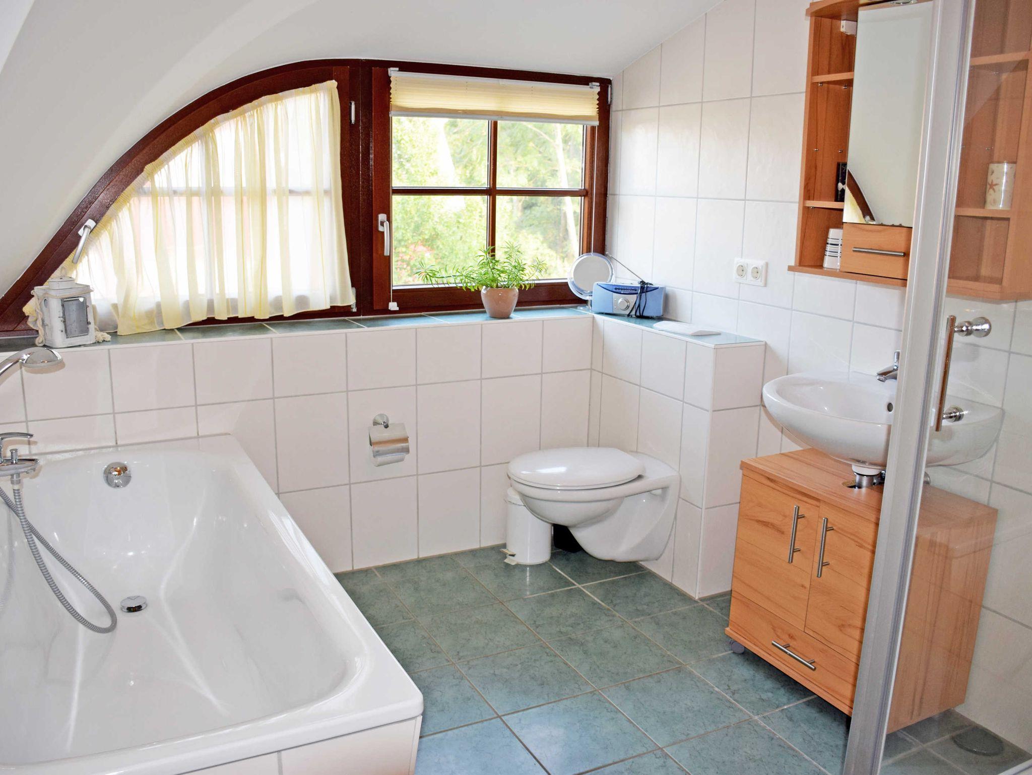 In der oberen Etage wurden für Sie 3 gemütliche Schlafzimmer eingereichtet (2 x Doppelbett, 1 x 2 Einzelbetten). Ein Schlafzimmer verfügt über Sat-TV. Das Badezimer ist mit Waschtisch, WC, Dusche und Badewanne ausgestattet.