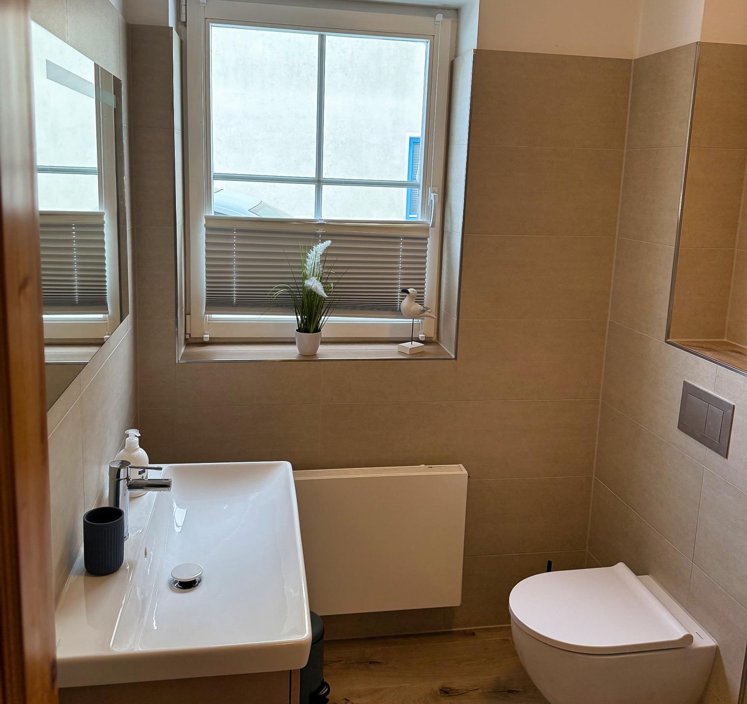 Das helle Tageslichtbad mit Dusche und Waschmaschine lässt ebenfalls keine Wünsche offen.