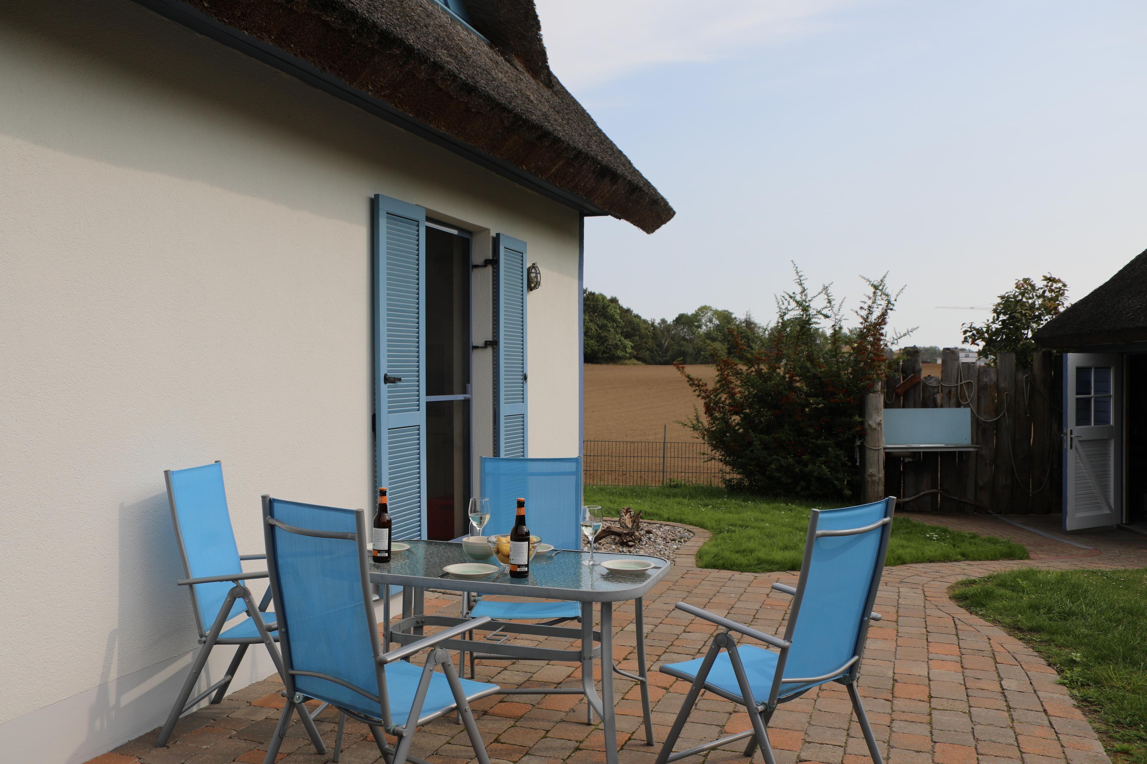 Das gemütliche Ferienhaus verfügt neben einem offenen Wohn-Essbereich im Erdgeschoss über einen Kamin und einer komplett ausgestatteten Küche (Ceranfeld, Backofen, Kühlschrank mit Gefrierfach, Geschirrspüler, Kaffeemaschine, Wasserkocher, Toaster, Tresen in der Küche als zusätzliche Essecke für das spontane Frühstück oder gemeinsames Kochen). Zudem bietet das Reetdachhaus eine Sauna, Badewanne, zwei Duschen sowie 2 WC's und im Obergeschoss befinden sich 2 Schlafzimmer mit jeweils 2 Doppelbetten und einem Einzelbett.