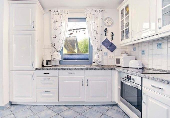 Die Küche ist umfangreich ausgestattet mit Cerankochfeld, Back- und Umluftherd, Mikrowelle, Kühlschrank, Geschirrspüler, Toaster, Eierkocher, Kaffeemaschine mit Thermoskanne sowie Essgeschirr und Besteck für 12 Personen. Im Abstellraum (HWR) befindet sich eine Waschmaschine, Bügelbrett und Bügeleisen, Gefrierkühlschrank, Regal zur Aufbewahrung von Lebensmittel, 1 Kinderhochstuhl, Wäscheständer, höhenverstellbare Ess- und Trinkbar für Hunde