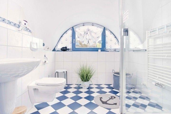 Die maritim blau-weiß gestalteten Räume und die Ostsee Dekoration im Ferienhaus, lassen auch im Winter und bei Schmuddelwedda ein Hauch von Sommer- Sonnenurlaub aufkommen.