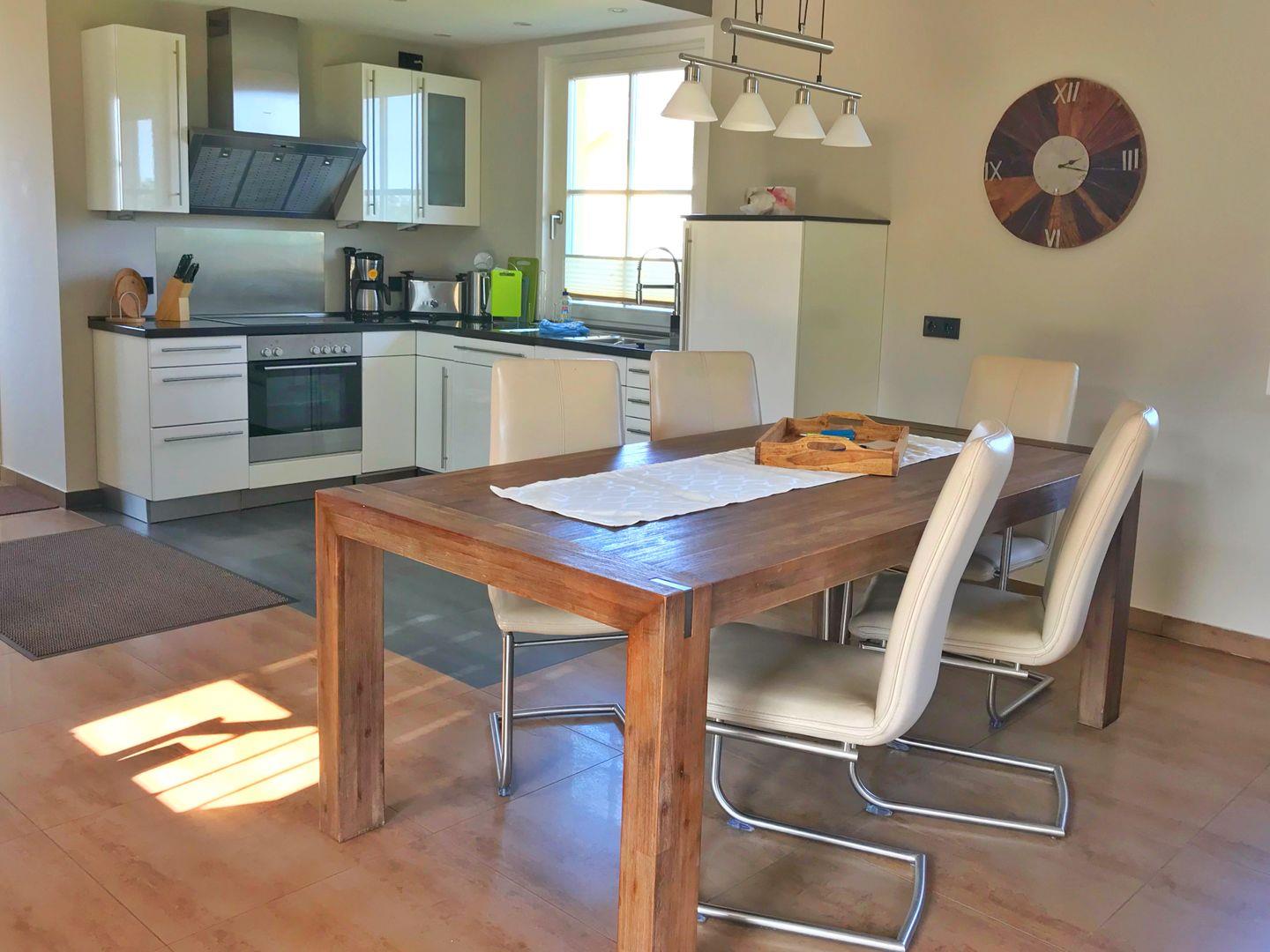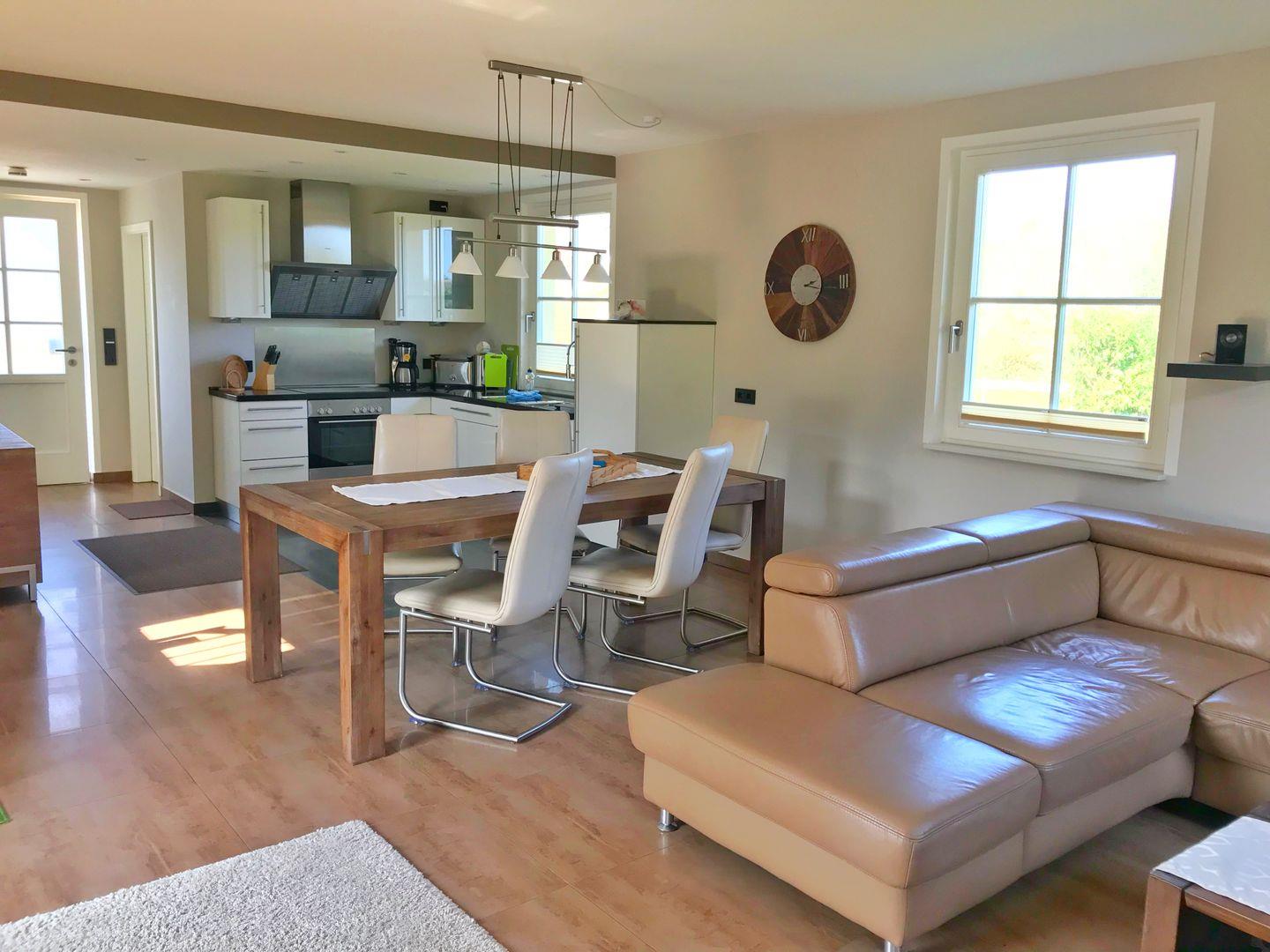 Das modern eingerichtete Ferienhaus Sarcander ist circa 100 qm groß und bietet Schlafmöglichkeiten für bis zu 6 Personen. Im Erdgeschoss des gepflegten Hauses finden Sie neben einem Hauswirtschaftsraum und einem kleinen Badezimmer mit Dusche und WC auch den großzügigen Wohnbereich. Dieser ist mit einer offenen Wohnküche mit Essbereich und einer gemütlichen Sitzgruppe ausgestattet. Ein großer Flachbildfernseher mit Dolbysystem und ein Pellets-Kamin sorgen für Kurzweil und gesellige Stunden.