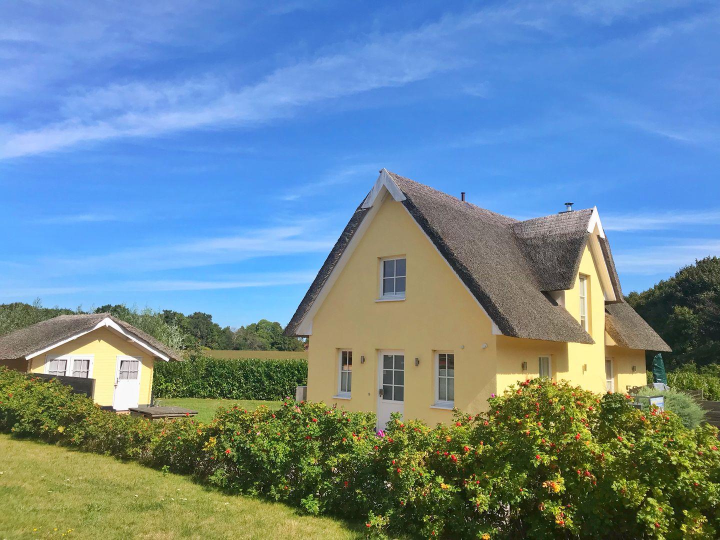 Das wunderschöne Ferienhaus unter Reet befindet sich am Rande einer ruhigen Ferienhaussiedlung im beliebten Badeort in Glowe auf der Insel Rügen! Der bekannte Badestrand, die Schaabe, der Yacht- und Seglerhafen, sowie Einkaufsmöglichkeiten befinden sich in unmittelbarer Entfernung und sind bequem zu Fuß oder mit dem Auto zu erreichen. Das moderne Ferienhaus verfügt über ein gepflegtes Grundstück mit 2 Sonnenterrassen, 2 PKW Stellplätzen, einer Ladestation für E-Auto´s ( Ladechip´s sind gegen Gebühr bei uns erhältlich, bitte die Anreiseinformation beachten ) sowie einen abschließbaren Fahrradschuppen.