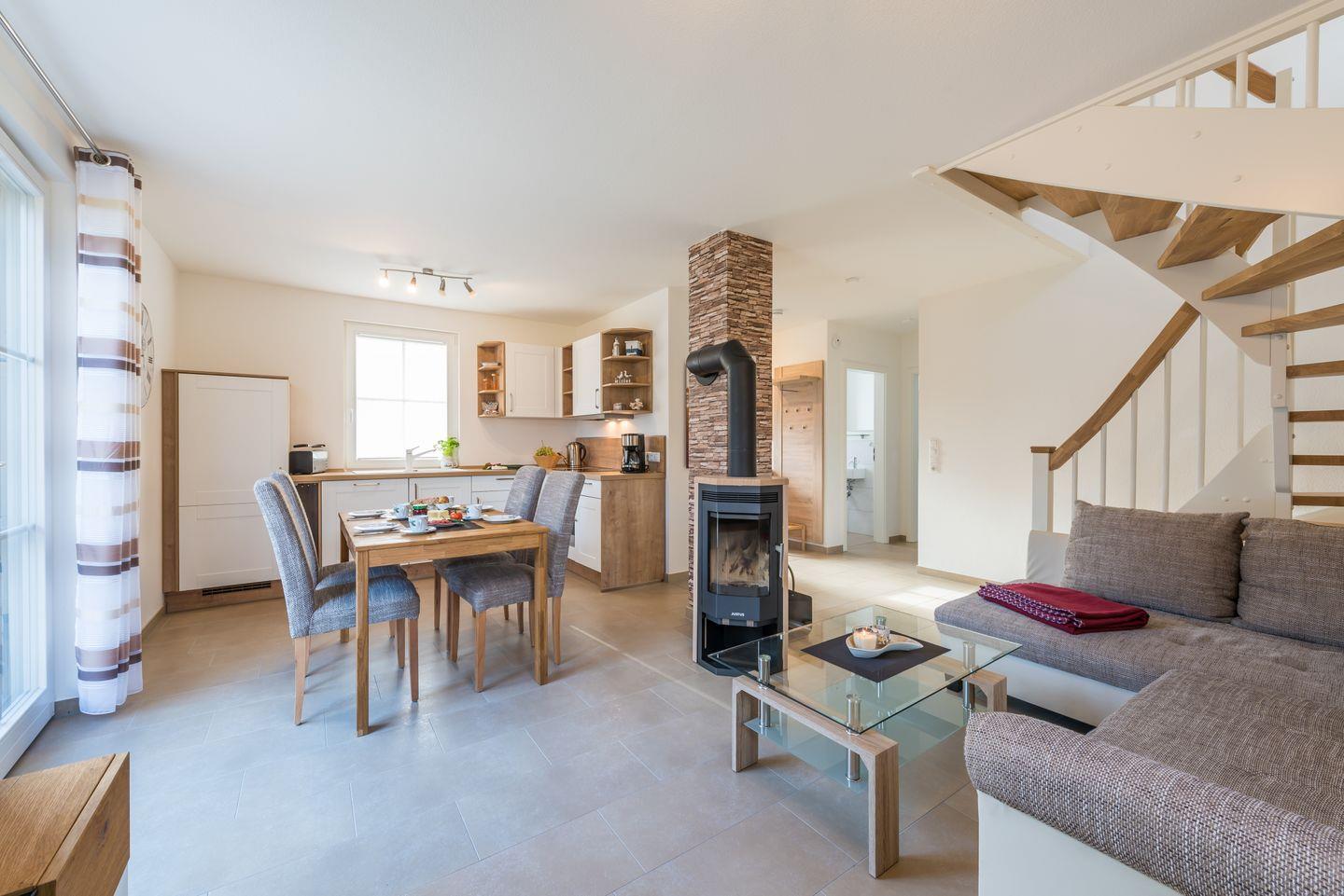 Elegante Doppelhaushälfte mit Sauna, Kaminofen und Garten, strandnah