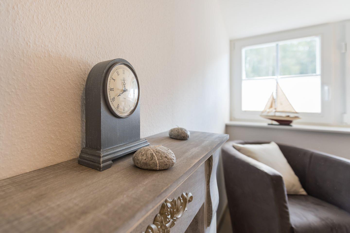 In absolut ruhiger Lage inmitten eines Dünenwäldchens erwartet Sie diese luxuriöse Doppelhaushälfte unter Reet. Mit einem großzügigen Raumangebot von 90 m² und einem 600 m² großen Grundstück kann das “Reetidyll” bis zu 4 Urlaubern und 2 Kleinkindern als Rückzugsort dienen. Entspannen Sie im elegant nordischen Interieur und lassen Sie einen langen Tag an der frischen Ostseeluft stilvoll am Kaminofen mit Panoramascheibe ausklingen – vielleicht bei einem Glas gutem Rotwein nachdem Sie in der hauseigenen Sauna den letzten Alltagsstress abgestreift haben? Im Obergeschoss finden Sie zwei gemütliche Schlafzimmer, eines davon mit Kinderbett und Wickelkommode. Ein zusätzliches Kinderreisebett (ohne Bettzeug) und ein Hochstuhl stehen außerdem zur Verfügung. Badezimmer sind auf beiden Etagen vorhanden, zudem gibt es ein Gäste-WC. Die Fußbodenheizung sorgt für wohlige Wärme im gesamten Haus. Ein eigener PKW-Stellplatz und ein abschließbares Gartenhaus für z. B. Fahrräder oder Ihre Angelausrüstung ergänzen Ihren Urlaubskomfort.