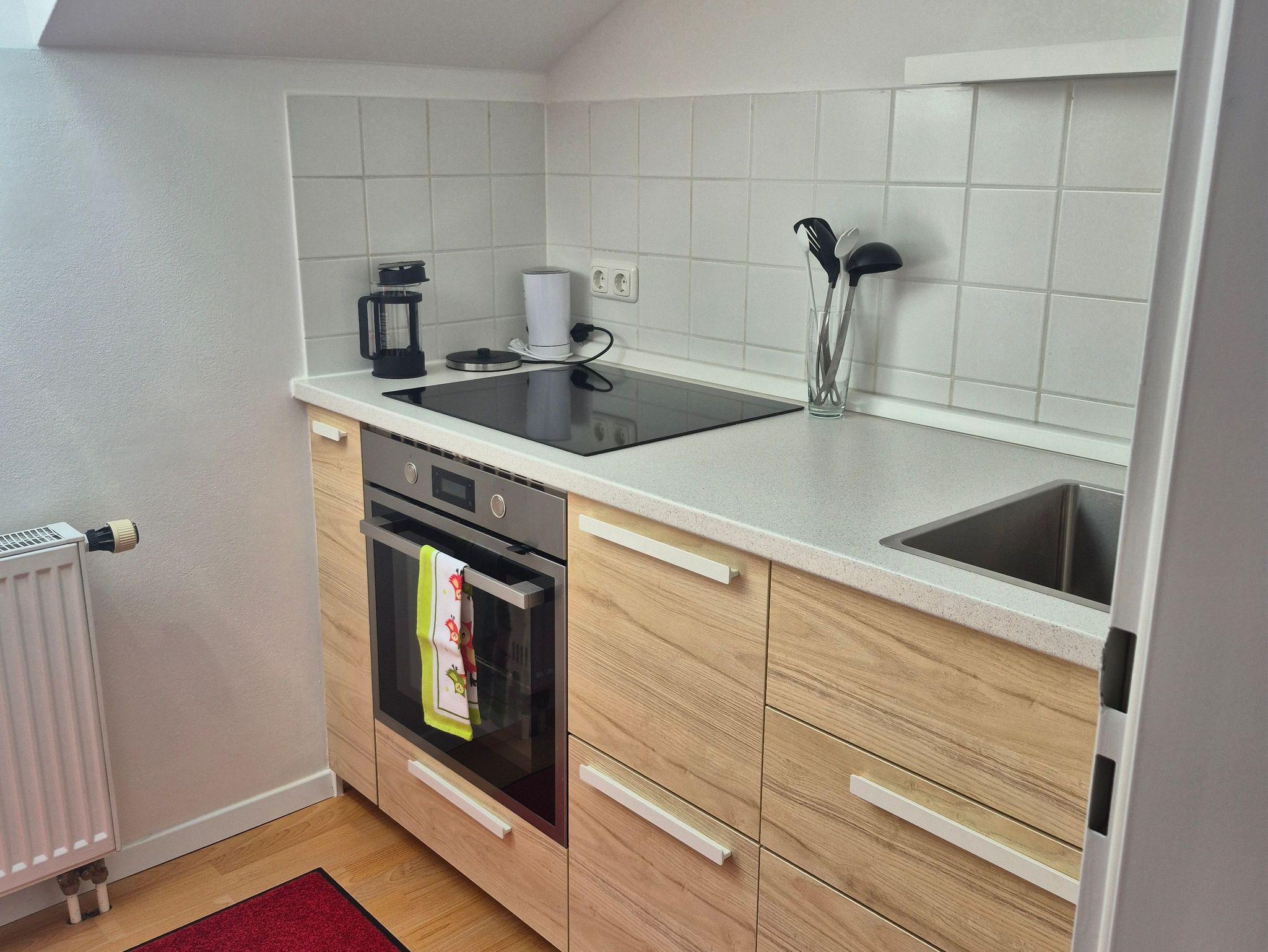 Die gemütliche Wohnung verfügt über einen Laminatboden und eine separate, kleine Küche.
