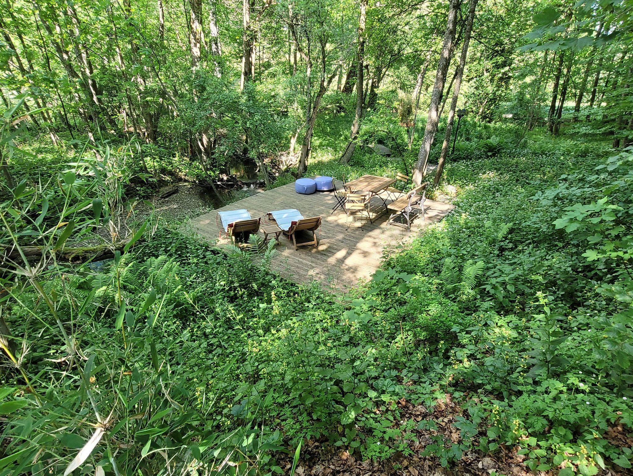 Freistehendes Haus zur Alleinnutzung auf 2500 m² Gartenpark mit Bachlauf, Teich und Badesteg