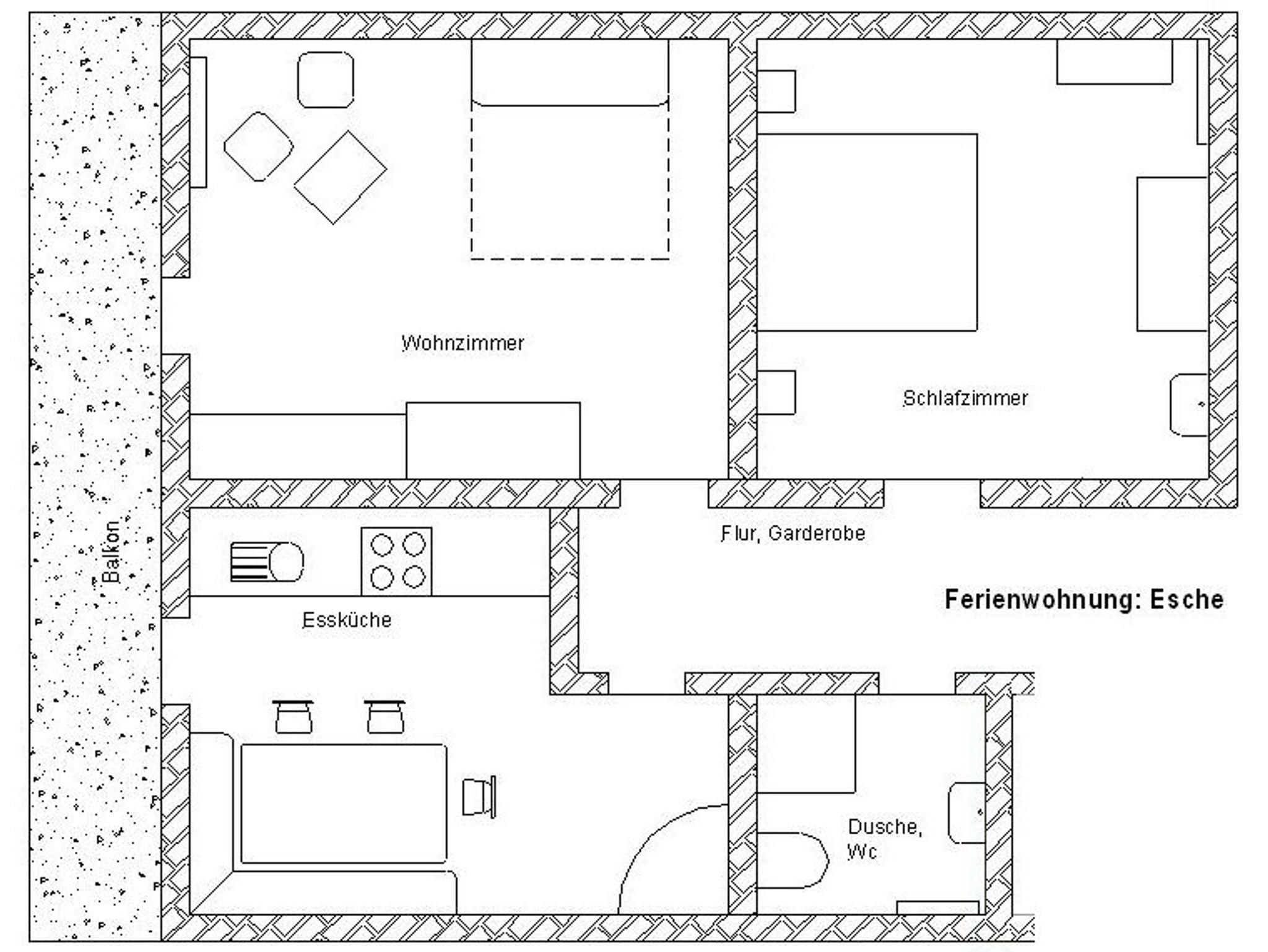 Genießen Sie Ihren Urlaub in unserer gemütlichen ***Familienwohnung. Sie liegt im 2. Obergeschoss mit leichter Dachschräge. Die Wohnung für 4 Personen ist 60 m² groß und verfügt über 2 getrennte Schlafräume. Sie hat außerdem einen sehr geschützten Ostbalkon, eine geräumige Wohnküche mit kompletter Ausstattung incl. Spülmaschine. Im Wohnzimmer mit Sitzecke, SAT-TV und Safe,können die zwei Sofas mit richtigen Matratzen zu Betten umfunktioniert werden. Im Schlafzimmer mit Doppelbett besteht die Zustellmöglichkeit für 1 Kinderbett. Dusche und WC, Diele mit Garderobe. Bett- und Tischwäsche sowie Hand- und Duschtücher inklusive. Bademantel bitte bei Bestellung vormerken. Auf Wunsch Kinderbett und Hochstuhl für unsere kleinen Gäste. Kostenloses W-LAN
