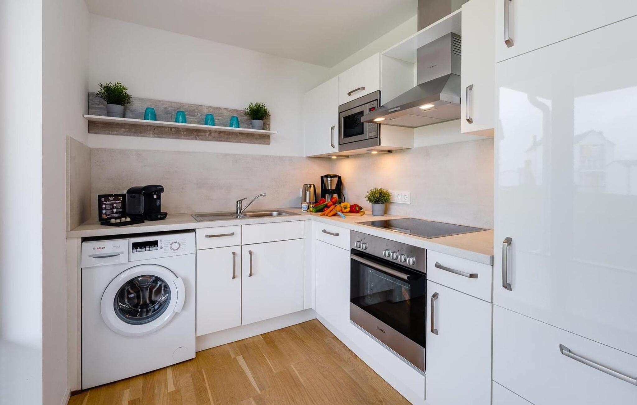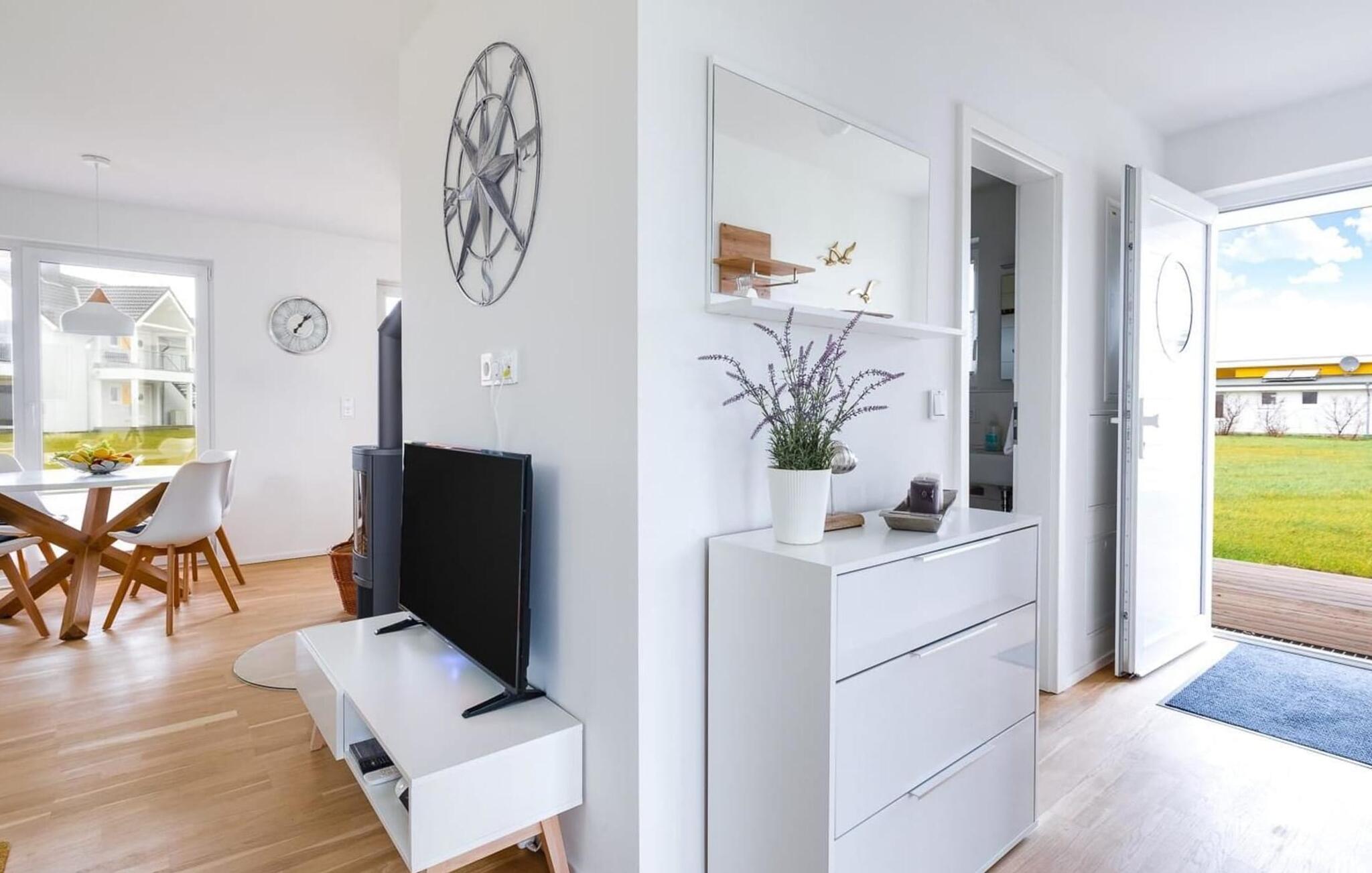 WiFi og Smart TV med Telekom Home Entertainment-program sørger også for indendørs underholdning. De to soveværelser har direkte adgang til udearealet.
