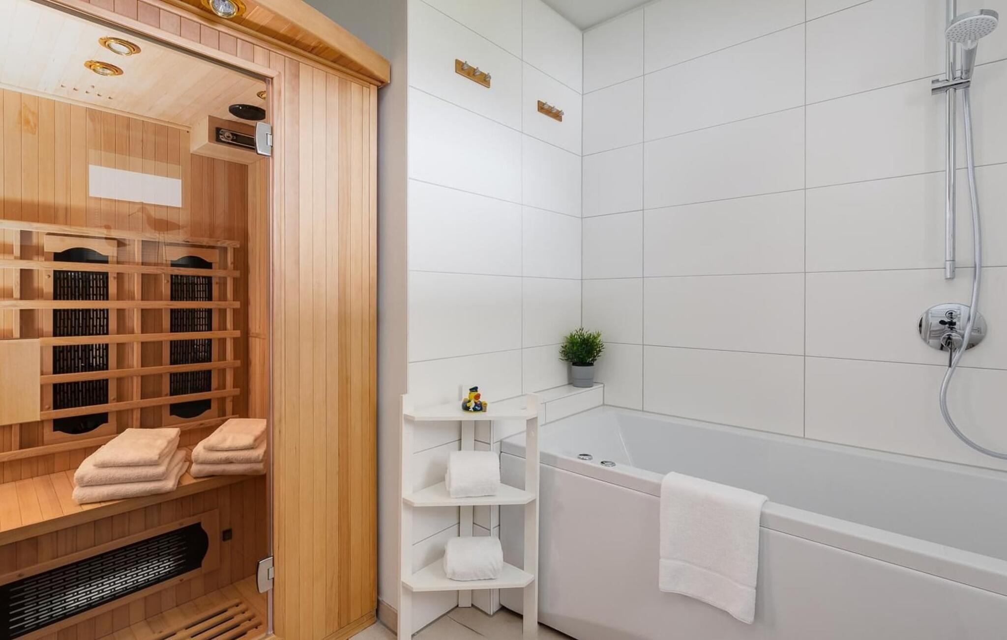 Til jer, der holder af wellness, kan I se frem til en infrarød varmekabine med hi-fi og LED-farvelysterapi lægger op til at slappe af efter en gåtur på stranden.