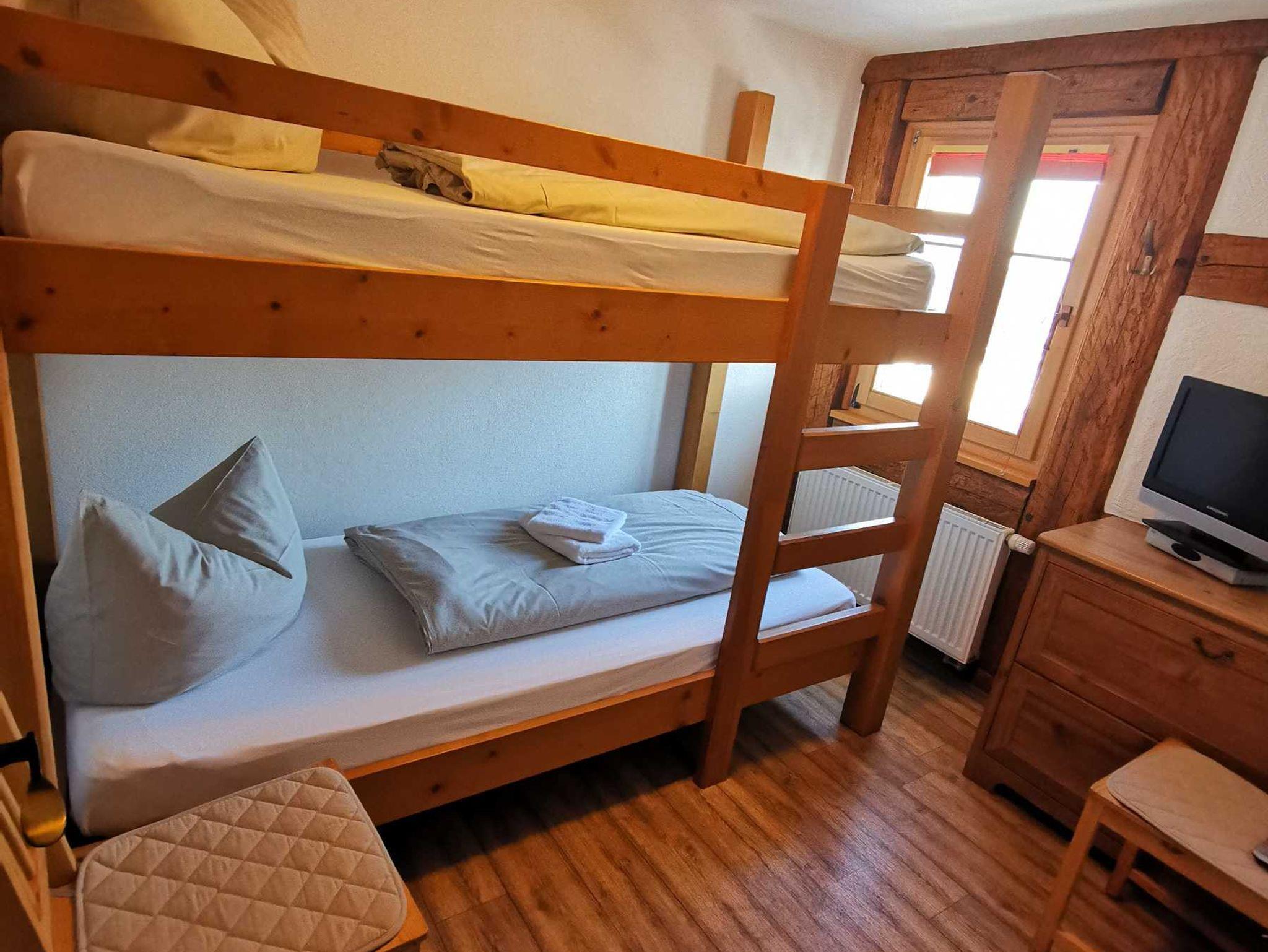 Familienzimmer mit 2 Schlafräumen und Bad. Ein Schlafzimmer mit Doppelbett und das zweite Schlafzimmer mit massiven Etagenbett. Beide Zimmer mit TV. Inkl. Frühstück
