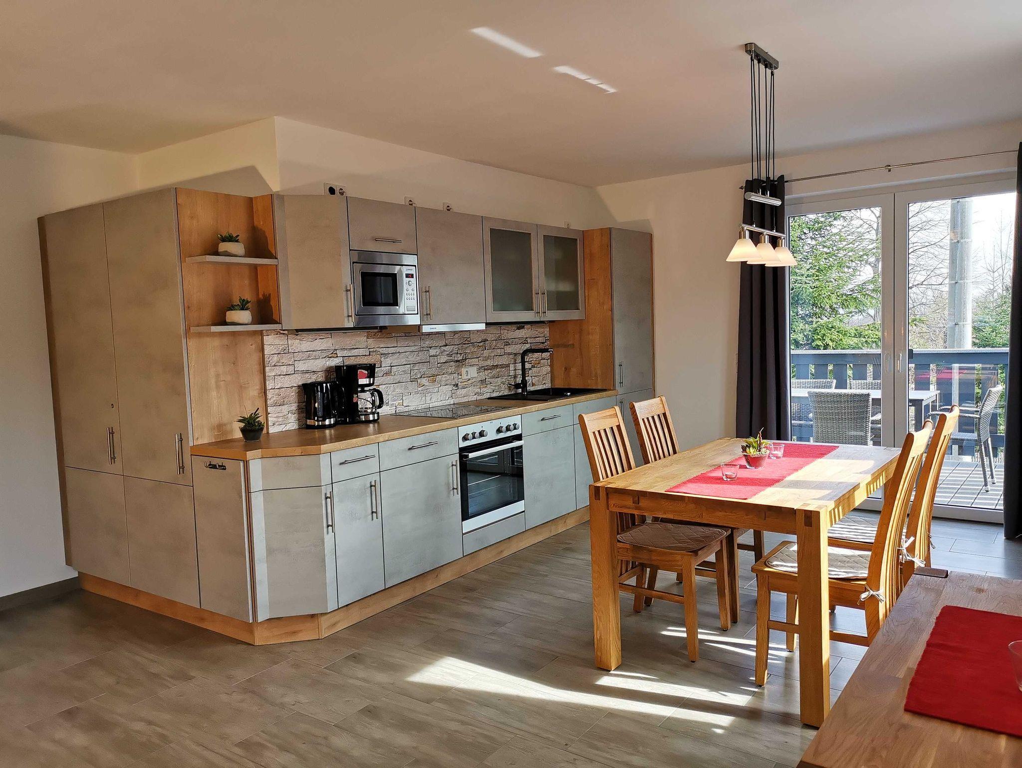 Von der Küche aus gelangen Sie direkt auf die Terrasse bzw. den Balkon. Waschmaschine und Trockner befinden sich im separaten Wirtschaftshaus.
