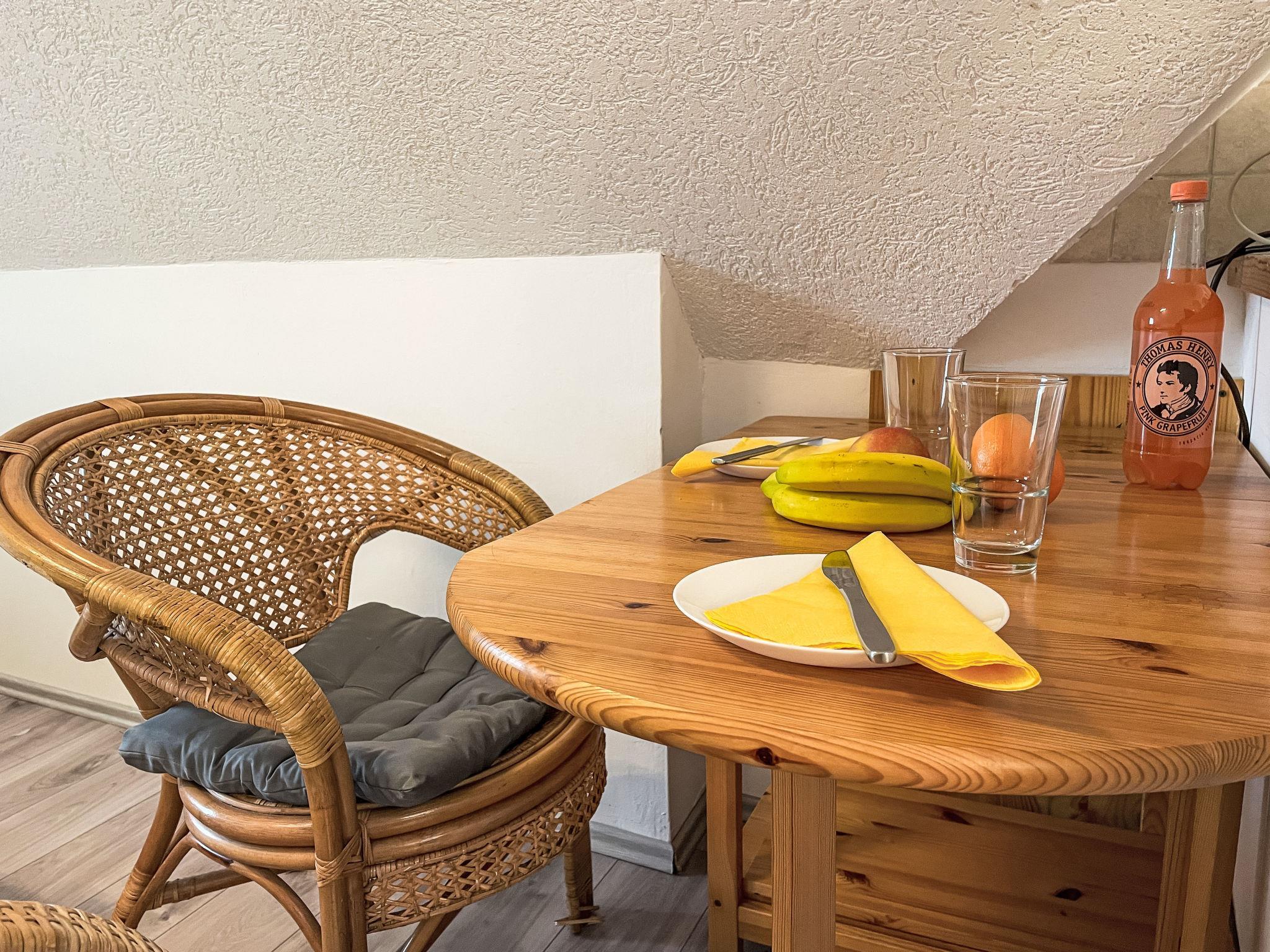 1-room apartment 24 m2 on 2nd floor. Living/sleeping room with sloping ceilings with 1 double bed (180 cm, length 200 cm), satellite TV (flat screen), DVD. Kitchenette (2 hot plates, electric coffee machine). Shower/WC. Electric heating. Facilities: Internet (WiFi, free). Please note: non-smokers only. Smoke alarm.