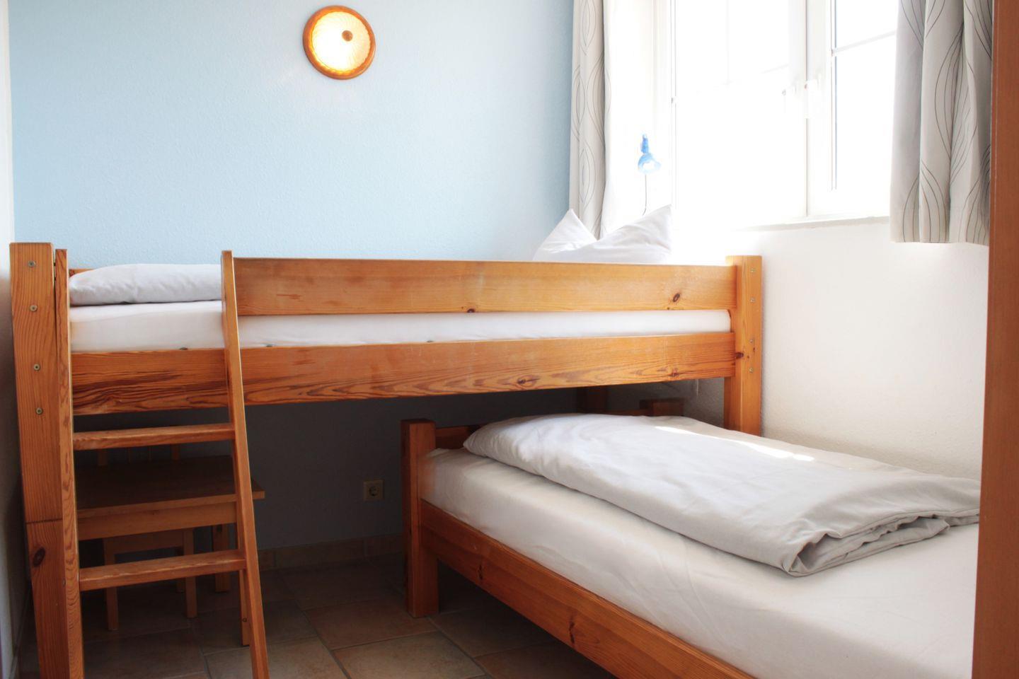 Das erste Schlafzimmer ist mit einem gemütlichen Doppelbett ausgestattet, das zweite Schlafzimmer hingegen verfügt über zwei bequeme Einzelbetten. Hier finden Sie sicherlich einen erholsamen Schlaf nach einem erlebnisreichen Tag im Ferienpark. Und wenn Sie sich nach einer angenehmen Lektüre oder einem unterhaltsamen Spiel sehnen, stehen Ihnen eine kleine Auswahl an Büchern und Spielen zur Verfügung.