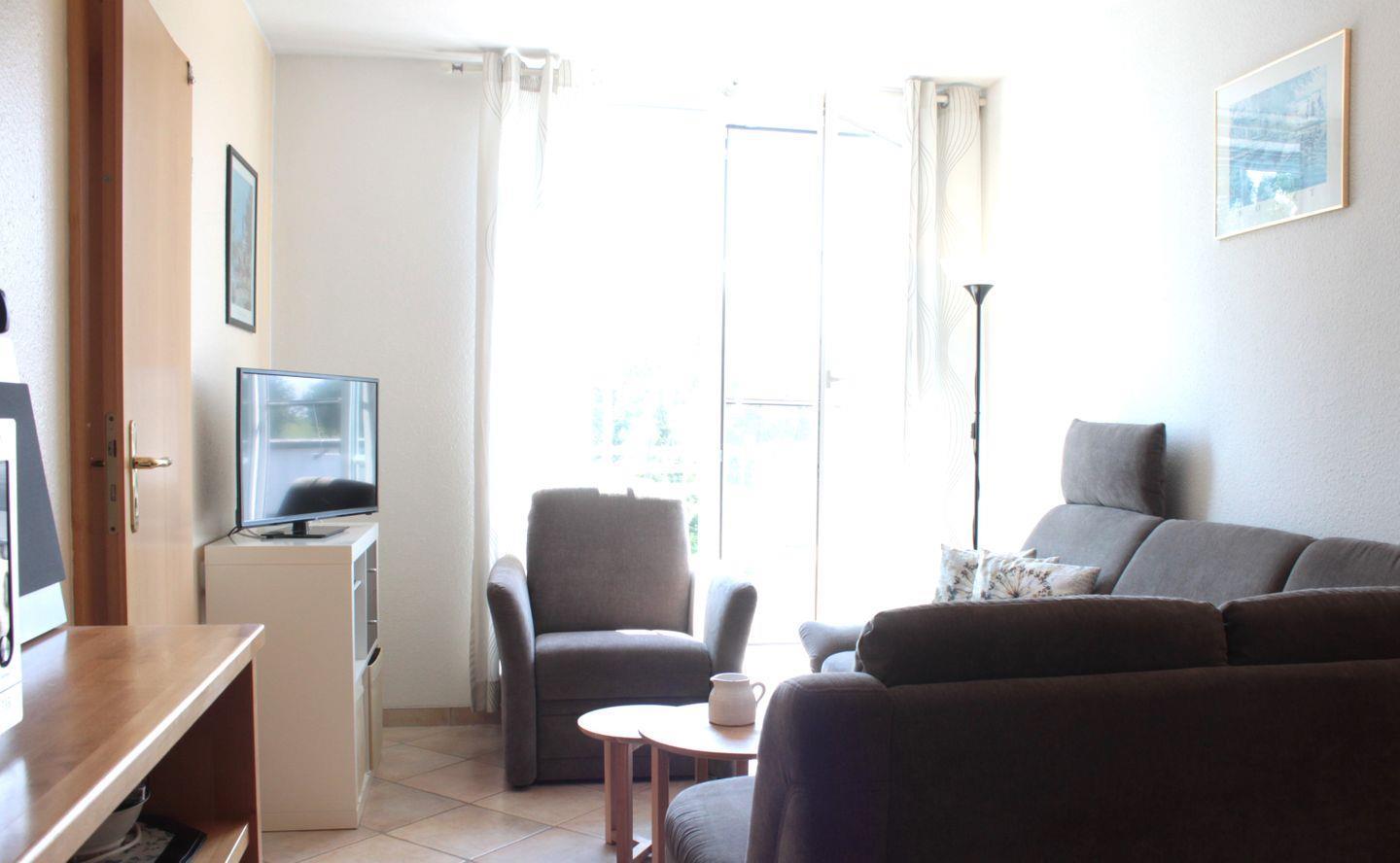 Gemütliche Ferienwohnug mit einem Balkon.
