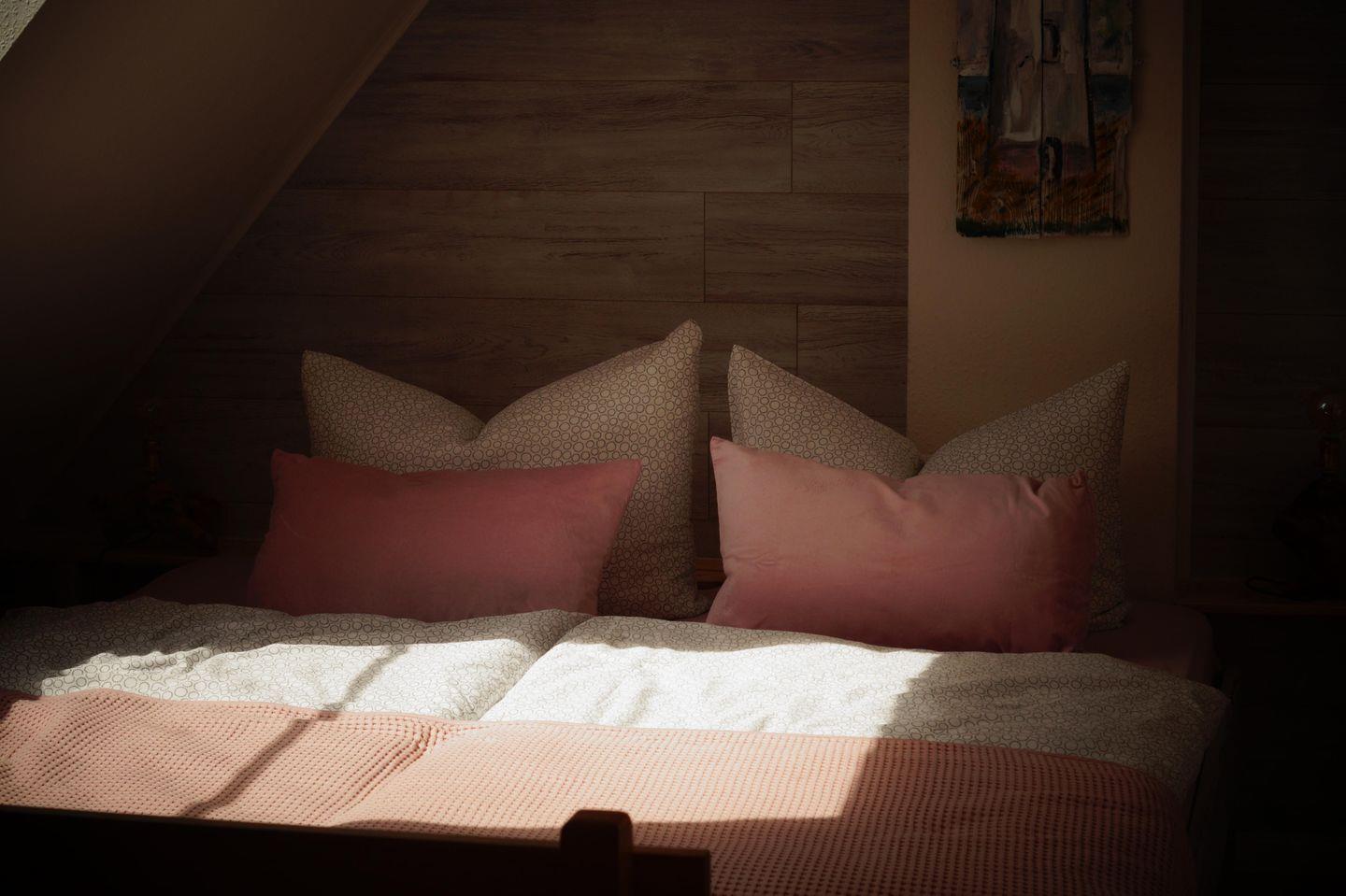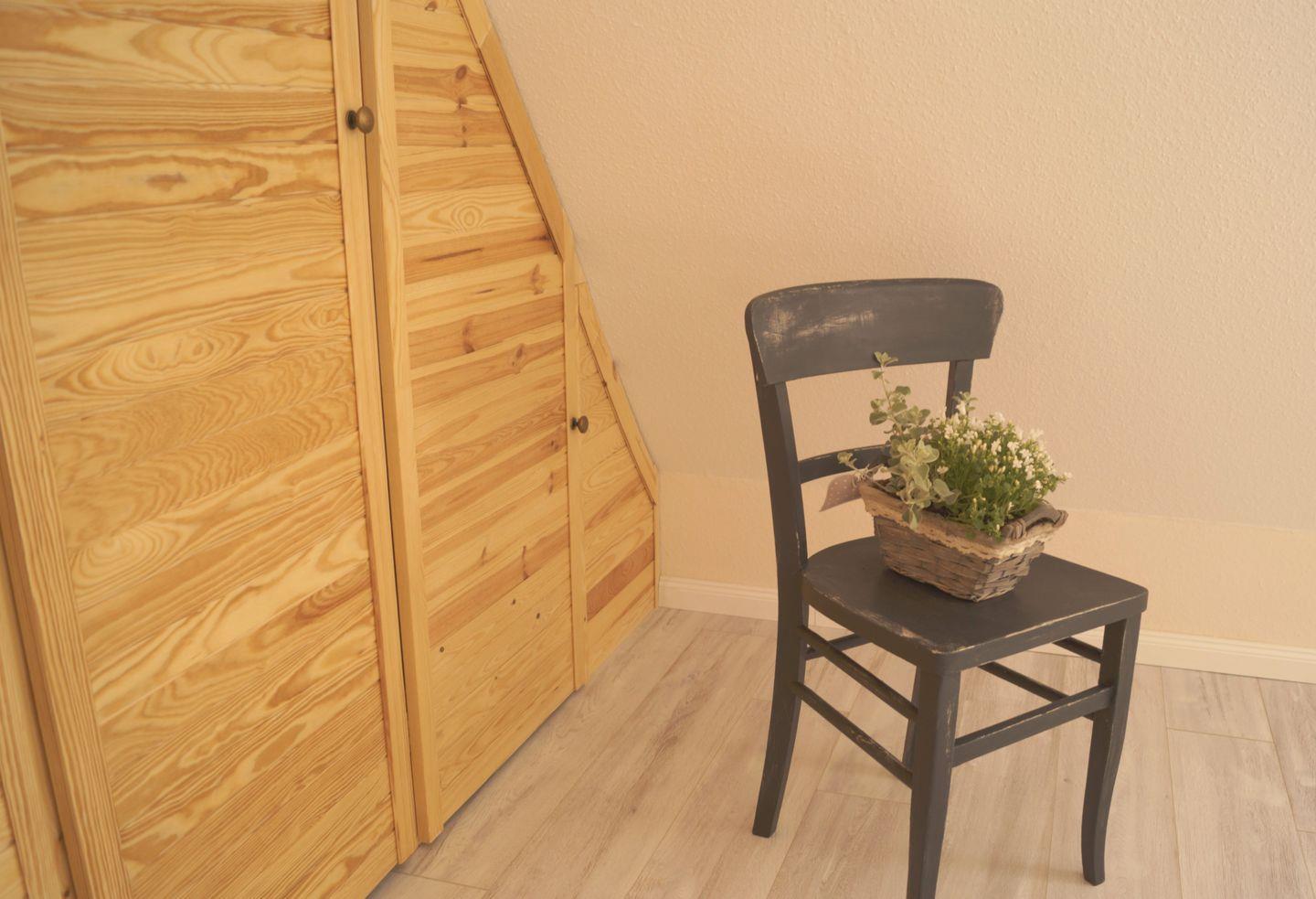Das Schlafzimmer lädt mit einem gemütlichen Doppelbett und einem geräumigen Kleiderschrank zum Wohlfühlen ein. Hier können Sie nach einem erlebnisreichen Tag zur Ruhe kommen und den Klang der Wellen im Hintergrund genießen. Zur Unterhaltung stehen Ihnen ein Fernseher, ein DVD-Player und ein Radio zur Verfügung.