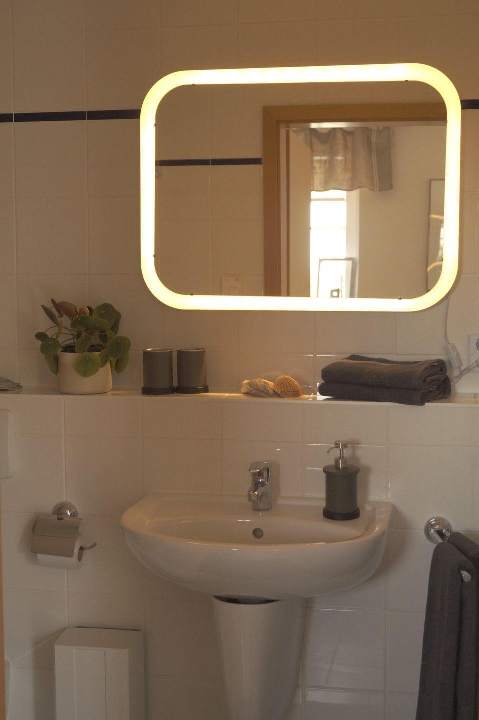 Im Badezimmer erwartet Sie eine Dusche mit Wanne. Hier können Sie sich entspannen und frisch machen, um die umliegende Natur in vollen Zügen zu genießen.