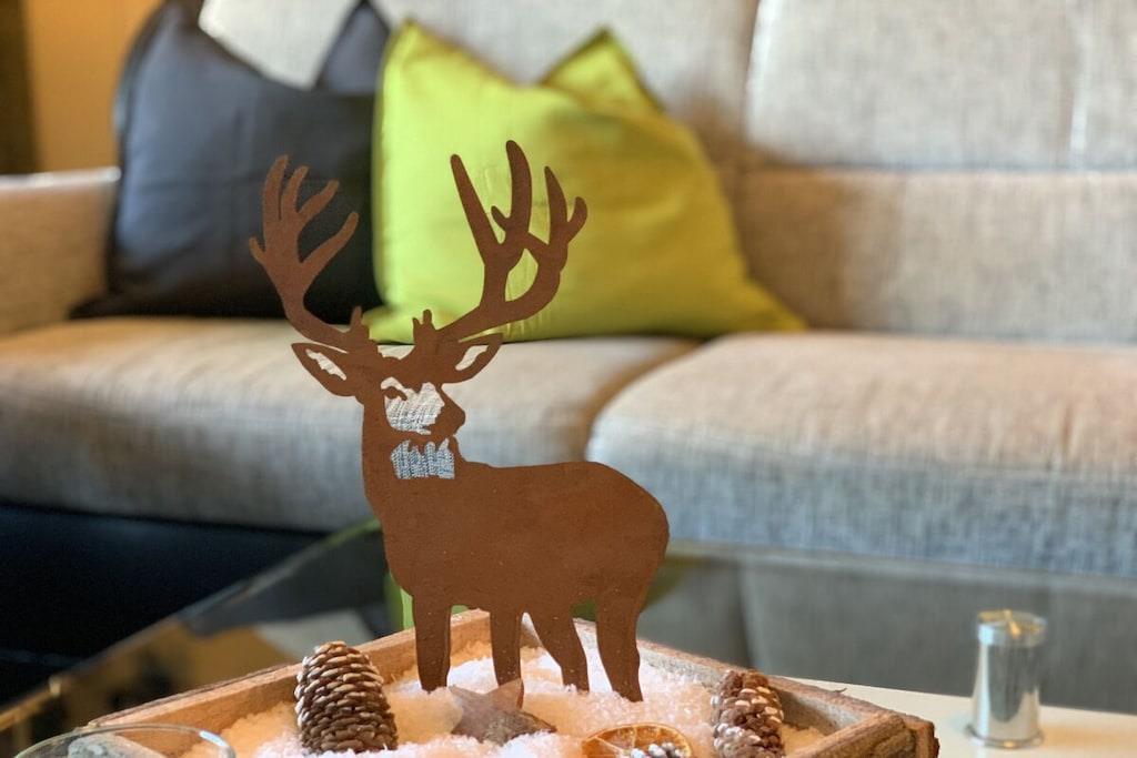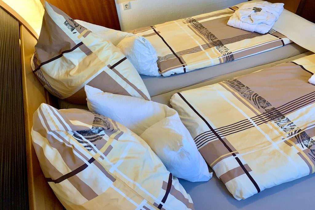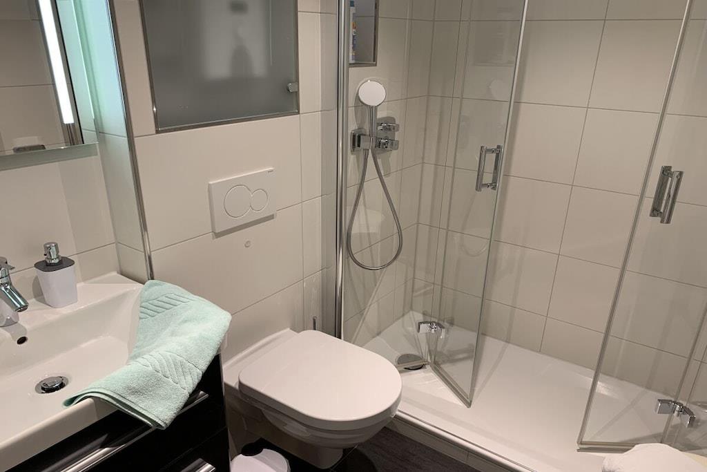Auf etwa 54 lichtdurchfluteten qm im Erdgeschoss bieten wir Ihnen ein komfortables Schlafzimmer mit Elektro-Boxspringbett, Flachbild-TV und großem Kleiderschrank, ein großes helles Wohn-/Esszimmer mit Ambientebeleuchtung, Stressless-Relaxsessel, bequemer Couch, Flachbild-TV, Dolby-Surround-System, PlayStation 3, Zugang zu einer Sonnenloggia (Balkon, trotz Erdgeschoss dank Hanglage) mit Sonnenmarkise, eine moderne separate Einbauküche mit kombiniertem Mikrowellenbackofen, Spülmaschine, Kühlschrank, Induktionskochfeld & Kaffeevollautomat und ein modernes Duschbad. Parkplatz, WLAN, Bettwäsche, Handtücher, Bademäntel - alles gratis dabei!