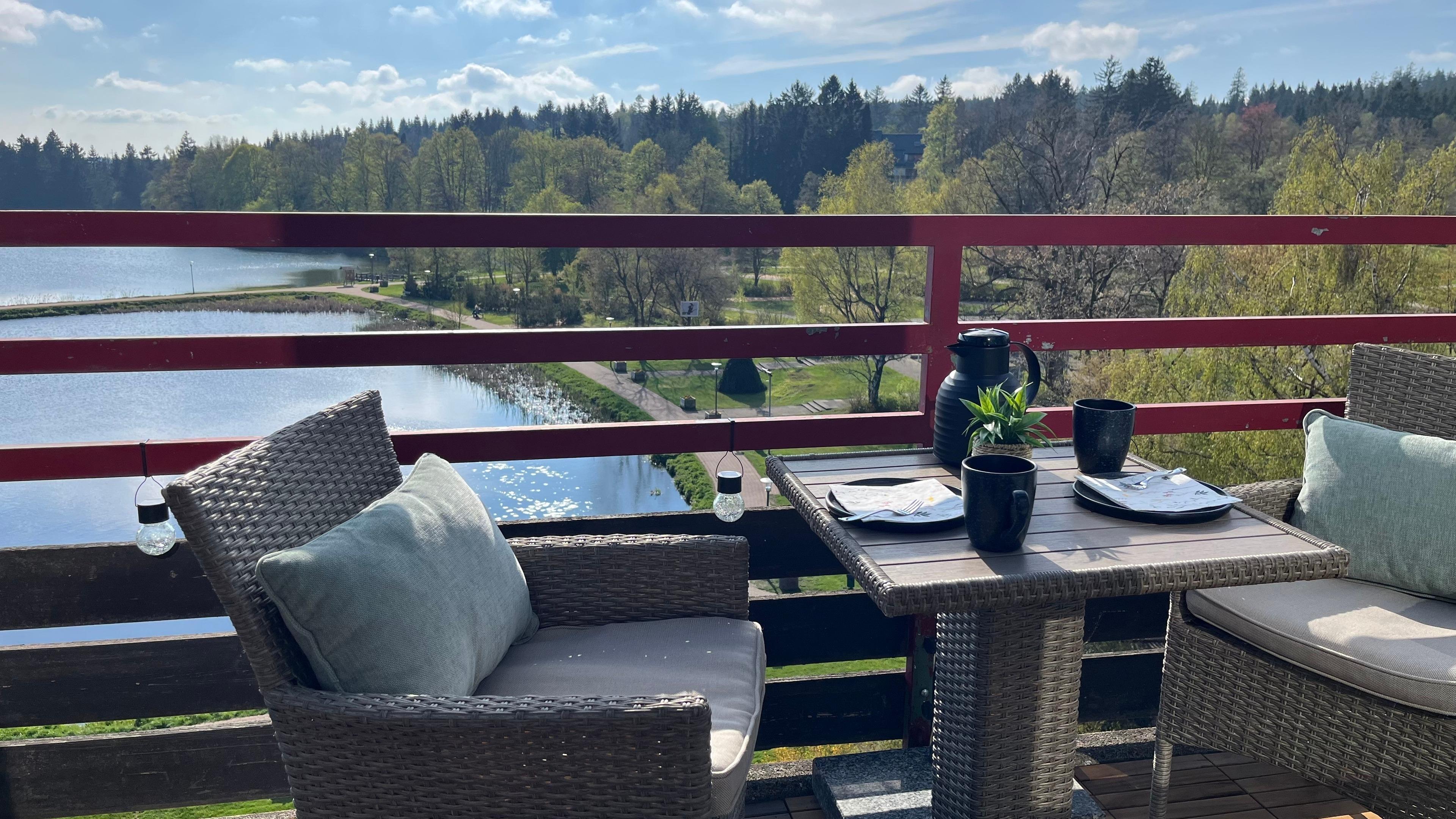 - Panoramablick: Genießen Sie vom privaten Balkon aus einen weiten Blick über den glitzernden See und die umliegenden Wälder. Ein Anblick, der zu jeder Tageszeit verzaubert.?