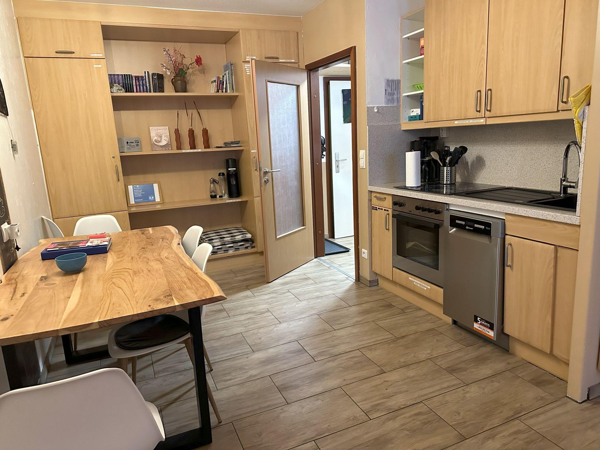 Inside, the flat impresses with its modern and high-quality furnishings. The combined living/dining room with open-plan kitchen leaves nothing to be desired: A leather sofa, a large dining table for 5 and a fully equipped kitchenette guarantee a pleasant stay. Two bedrooms with box-spring beds, including a double bed and two single beds, offer excellent sleeping comfort. The interior is complemented by two newly tiled bathrooms, one with a walk-in shower, and free high-speed WiFi as well as a GIGA TV box from Vodafone including Netflix for entertainment in the evening.