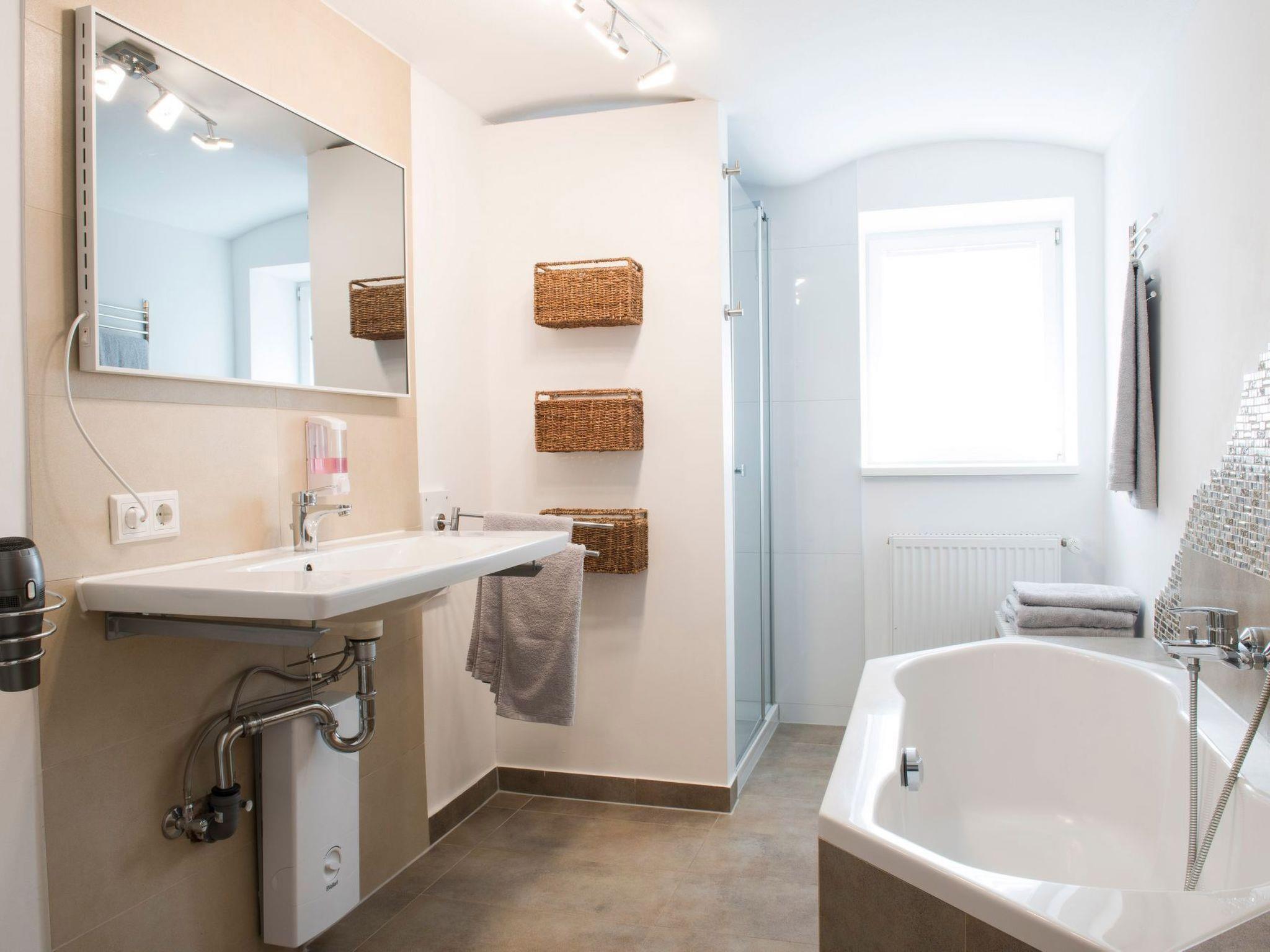 Inside, the non-smoking flat offers comfort and cosiness in every room. Relax in the spacious living area, which provides entertainment with a spacious seating area, an electric fireplace and a flat-screen TV with Wii console. A dining table for six allows you to enjoy meals together in a cosy atmosphere. The fully equipped kitchen with dishwasher, filter coffee machine, toaster, kettle and a small bar table fulfils every wish. Two bedrooms with high-quality beds and lovingly selected details guarantee a restful night's sleep, while the bathroom with a shower and bathtub invites you to relax.