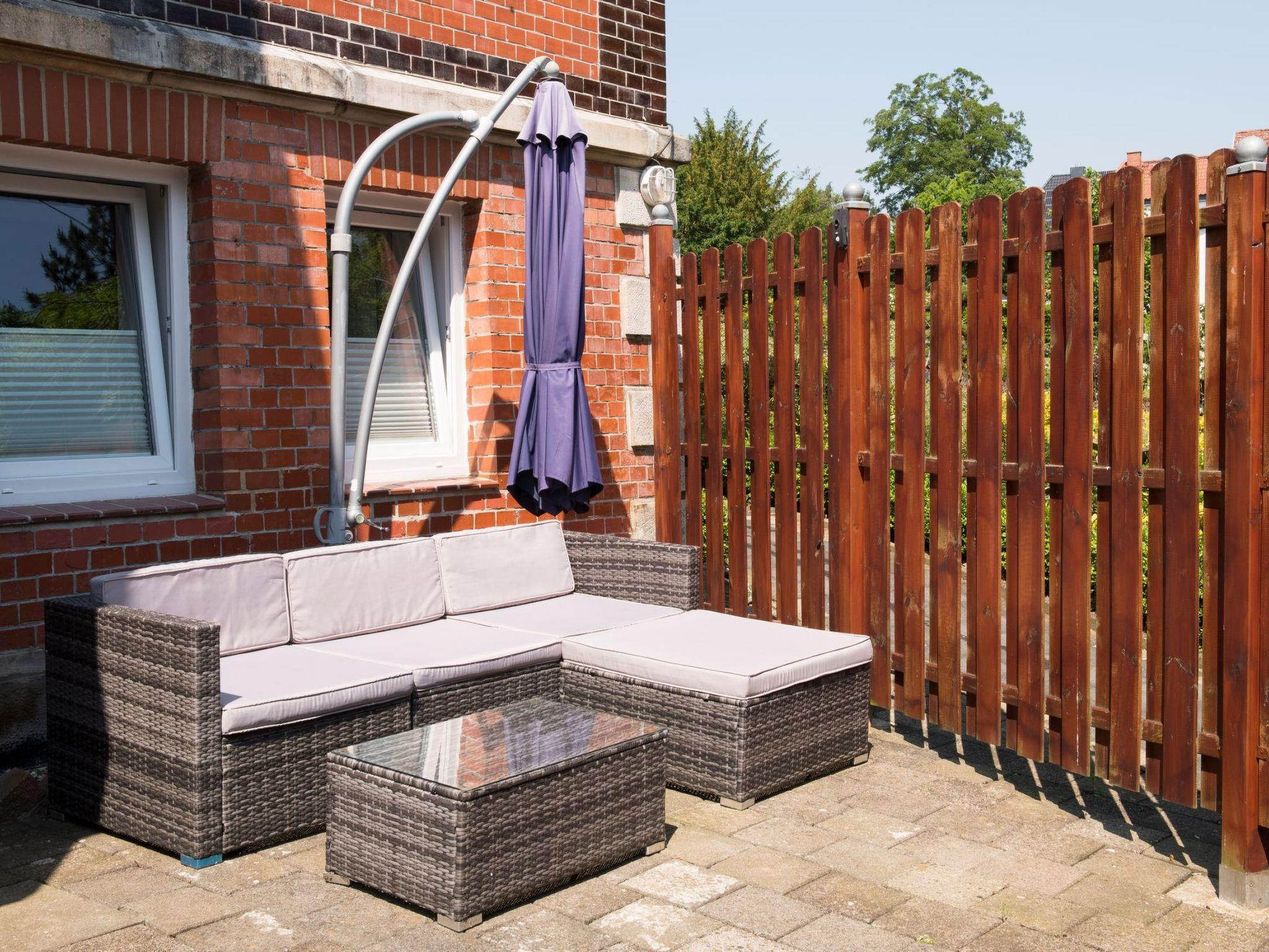 A wide range of amenities await you in the outdoor area. The separate entrance ensures privacy, while barbecue facilities and a seating area in front of the door invite you to linger outside. Behind the house there is a large garden with a swing, which is particularly popular with children. Free parking directly on the street offers additional convenience.
