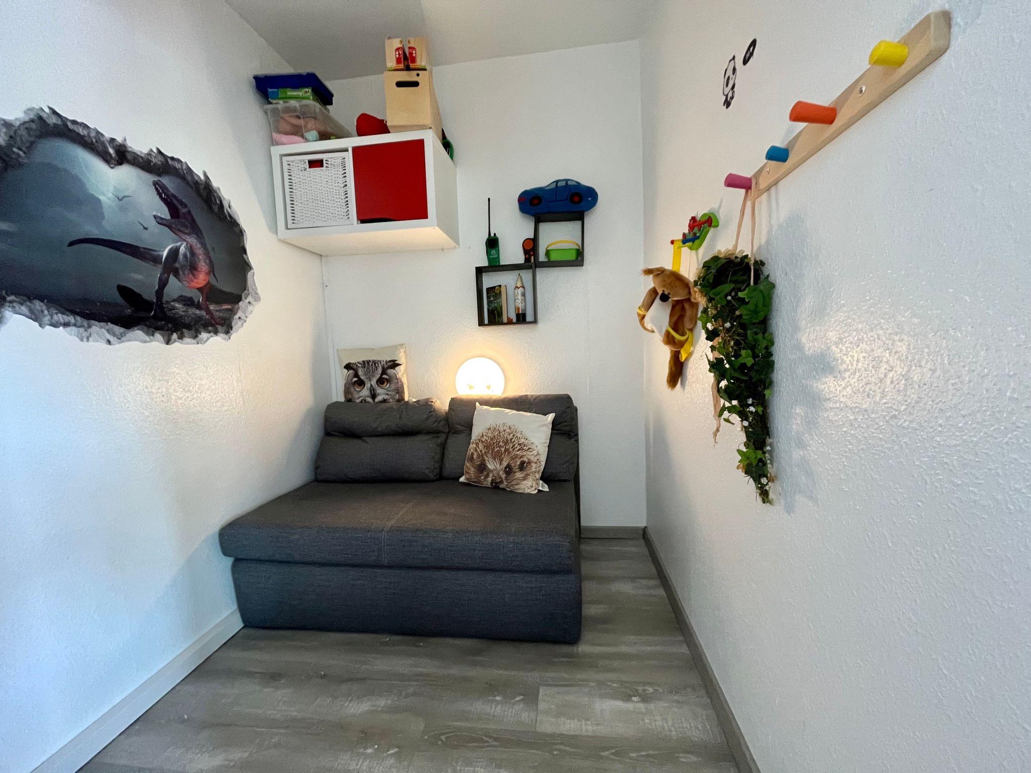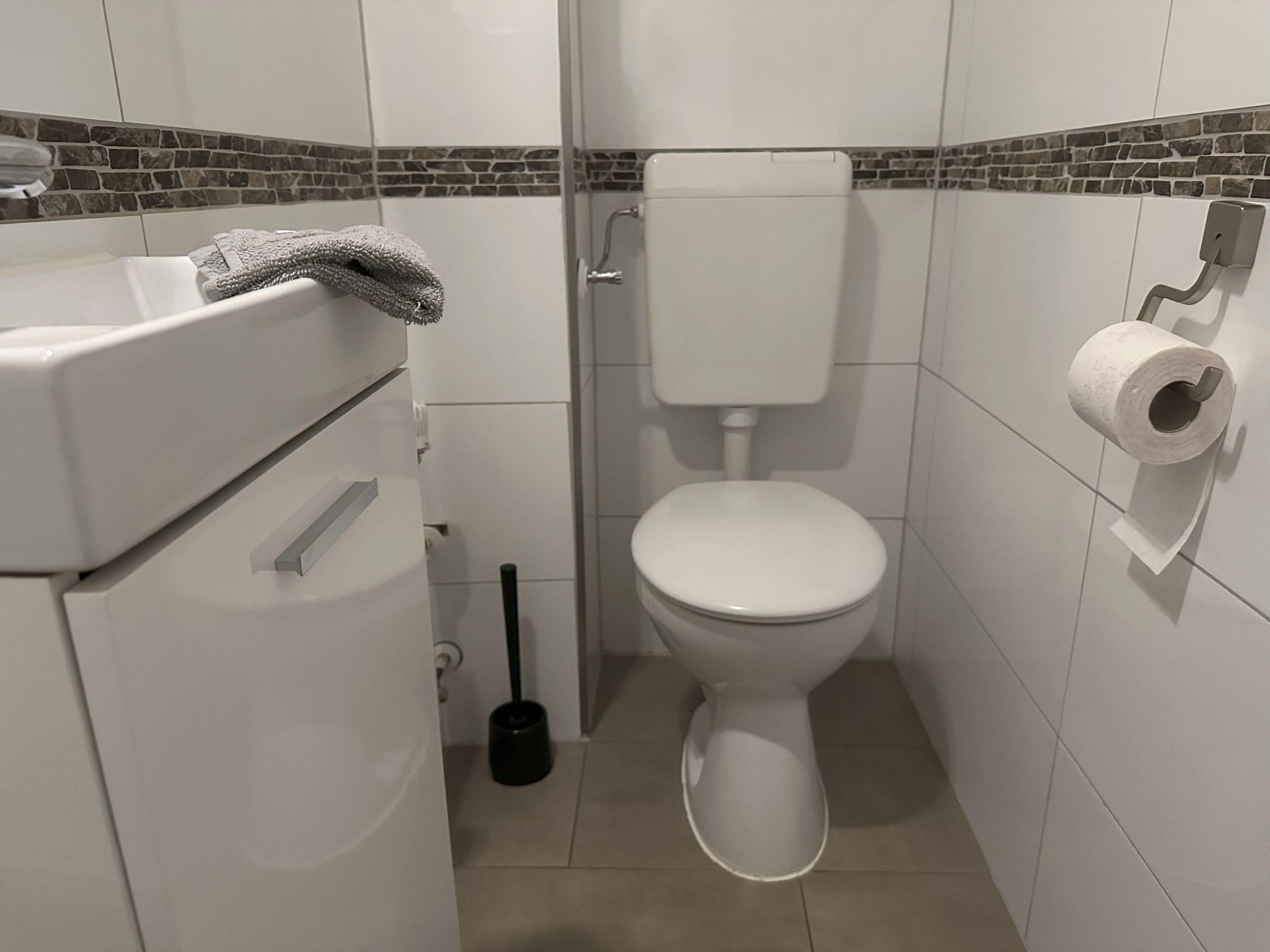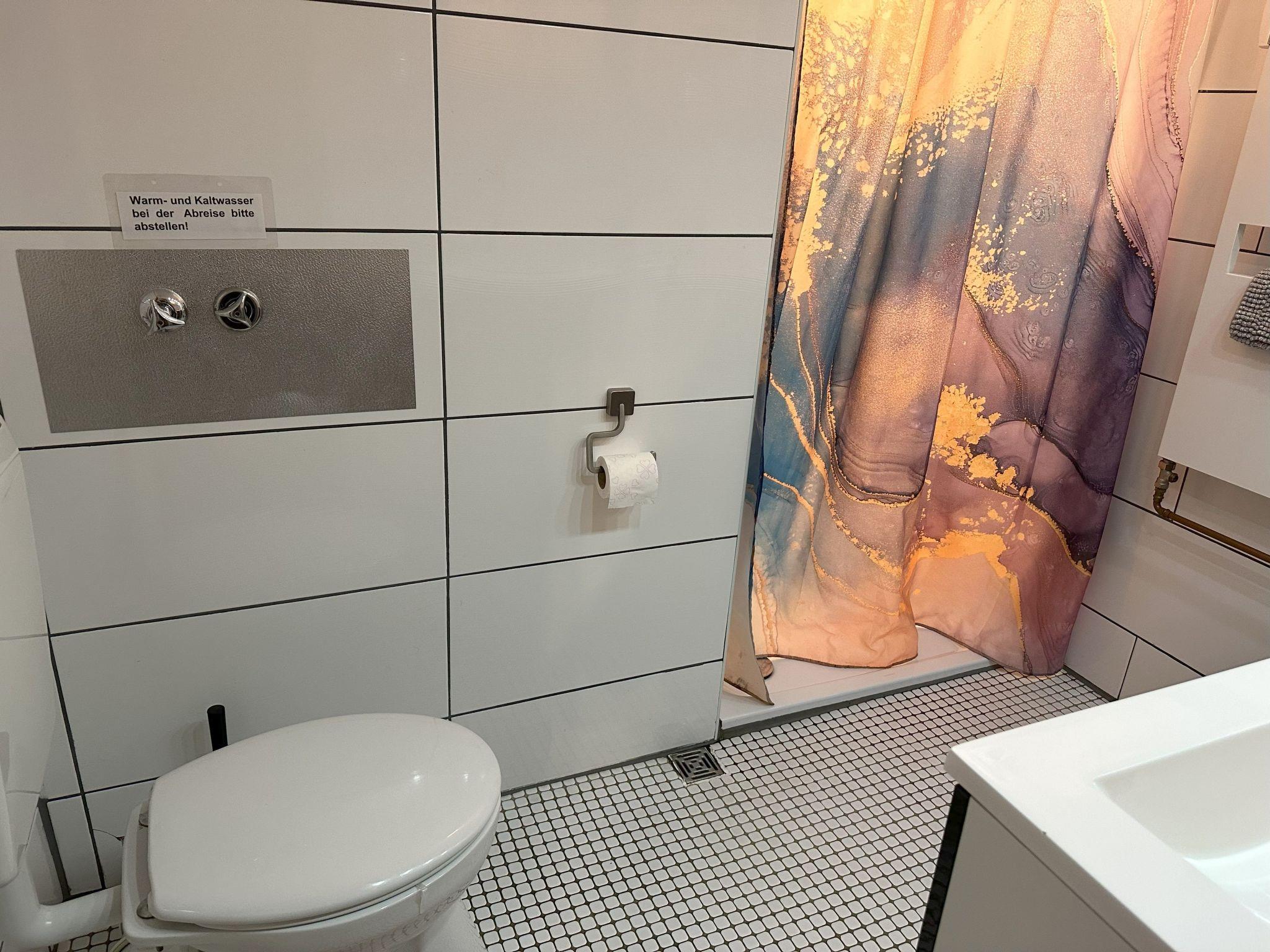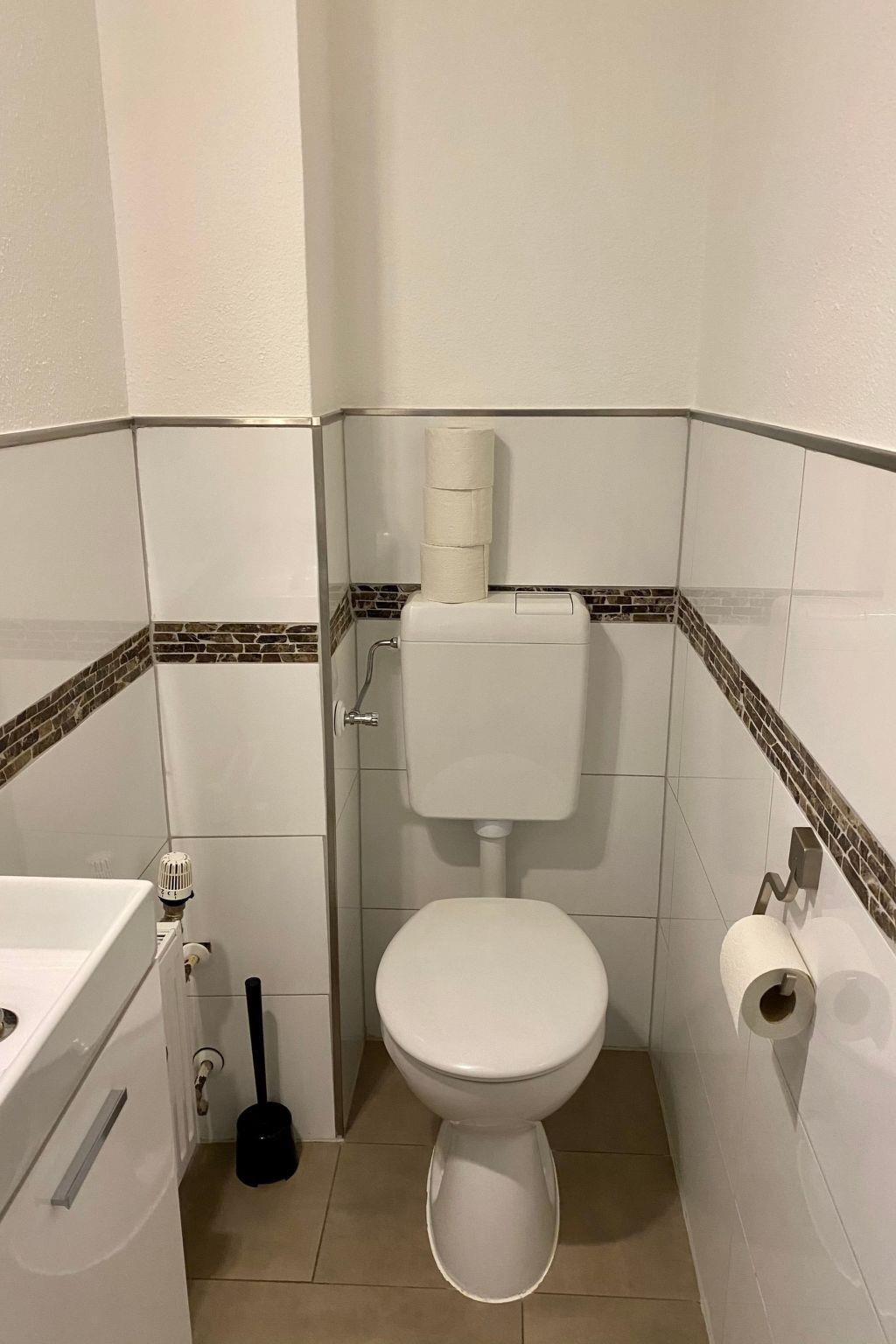 **Interior life in perfection**: Our flat offers everything for a carefree stay. Three bedrooms with high-quality box-spring beds guarantee peaceful nights. The combined living/dining room with modern kitchenette, equipped with dishwasher, microwave, coffee machine and much more, leaves nothing to be desired. In addition, two sanitary areas, 1 x equipped with walk-in showers and double washbasins, provide comfort. and 1 additional guest WC with hand basin. A Smart TV, GIGA TV Box from Vodafone and a DVD player, complemented by free high-speed WLAN, provide entertainment for the whole family.