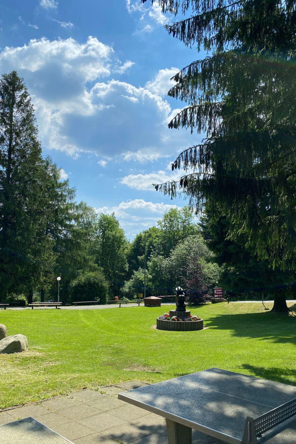 **The surrounding area - a paradise for nature and culture lovers**: The Harz Nature Park begins directly behind our holiday park with well-developed hiking trails that invite you to adventure. Hahnenklee, known as a natural paradise, offers attractions such as the Liebesbankweg. The UNESCO World Heritage town of Goslar is just a few kilometres away, and Clausthal-Zellerfeld with its renowned university is also within easy reach. For action lovers, the Bocksberg offers attractions such as the summer toboggan run, the Drachenblitz (opened in 2025) with 5 roundabouts, the dragon gorge and the giant dragon that watches over the gorge, Bocksbergcarts, tyre slide, Zipline Adventure (climbing park and high ropes course, adventure swing, witches' labyrinth, fun park with trampolines, slide tower, comet swing, a great playground and the bike park. If you prefer it more comfortable and don't fancy the climb, take the cable car or the 4-seater chairlift up the Bocksberg. In the Bocksberghütte, a self-service restaurant awaits you with tasty treats to enjoy in rustic surroundings or on the sun terrace with a phenomenal view over the landscape.