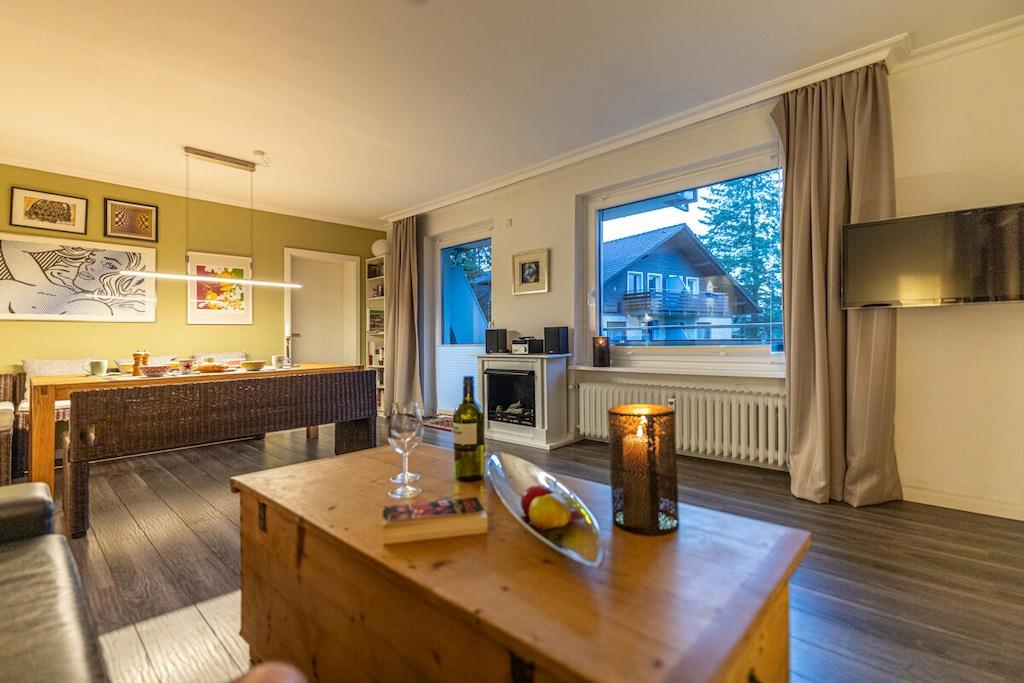 Unsere Ferienwohnung Hexenzauber liegt im 1. Obergeschoss und mitten im Herzen von Hahnenklee mit wunderschönen Blick auf den Kranichsee. Direkt daneben befindet sich unsere 2. Ferienwohnung Hexenglück Hahnenklee, die mit einer schalldichten Zwischentür verbunden ist. Bei Bedarf, z.B 2 Familien, können Sie diese dazu mieten. Sie bekommen dann den Schlüssel. Wir haben die moderne Wohnung individuell und stilvoll eingerichtet, so dass Sie sich wie zu Hause fühlen. Individuelle Beleuchtung mit vielen Möglichkeiten runden ihr Wohlfühlerlebnis ab. Das Ledersofa im Wohnzimmer lädt zu einem gemütlichen Fernsehabend ein oder es lässt sich ausziehen als weitere Schlafgelegenheit. Ein Ethanolkamin sorgt für gemütliche Winterabende. Die Küche ist komplett ausgestattet inkl. Waschmaschine und Geschirrspüler. Beim Kochen haben Sie einen tollen Blick auf den See. Im Schlafzimmer finden Sie ein gemütliches Boxspringbett und einen großen Kleiderschrank. Parkplätze sind im Hof vorhanden